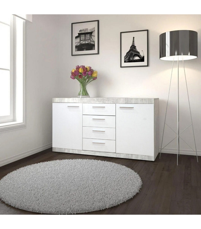 Amsterdam μπουφές σε γκρι απόχρωση με ντουλάπια και συρτάρια σε λευκό χρώμα 118,5x35x83 εκ