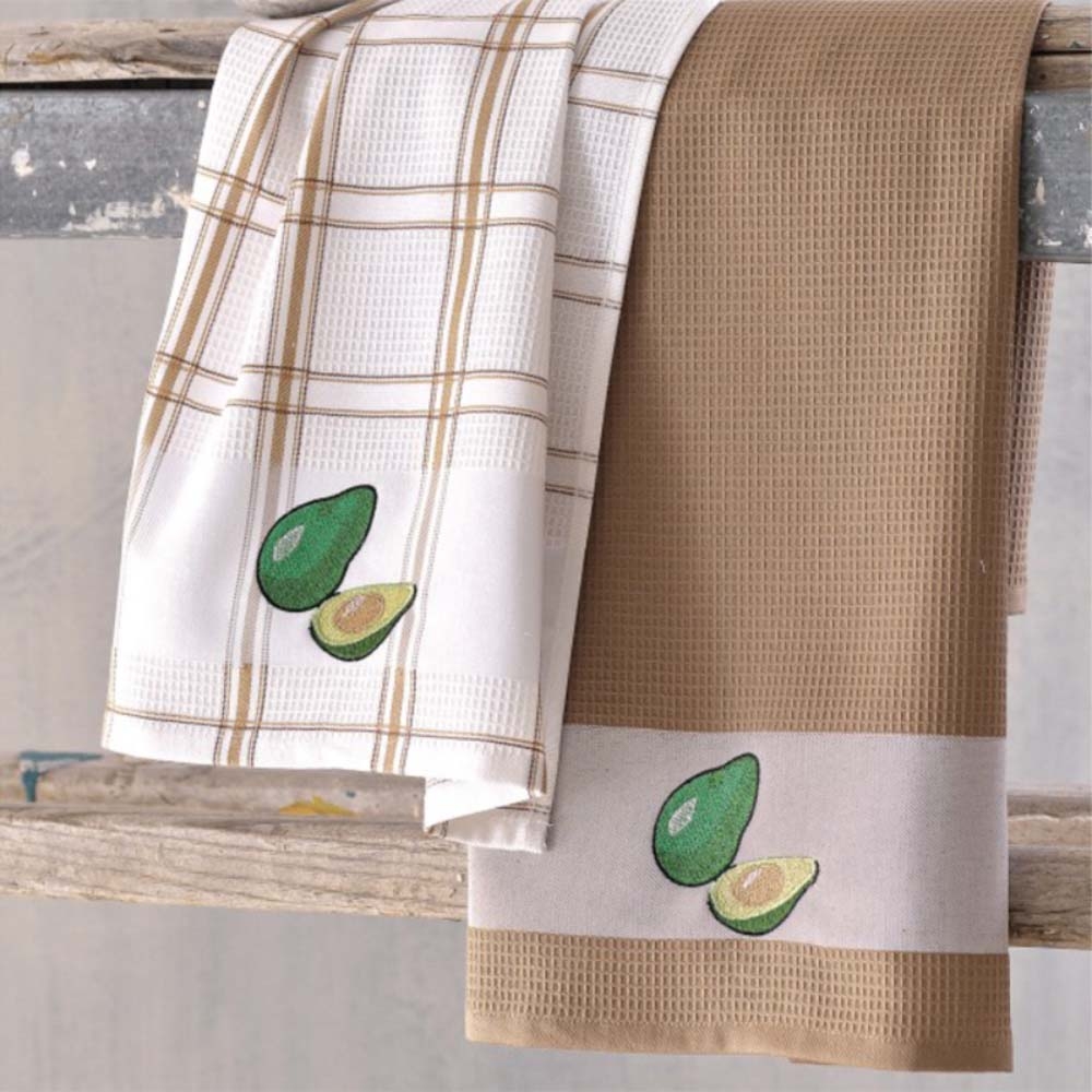 Avocado σετ πετσέτες κουζίνας δύο τεμάχια πικέ σε λευκή και μπεζ απόχρωση 45x70 εκ