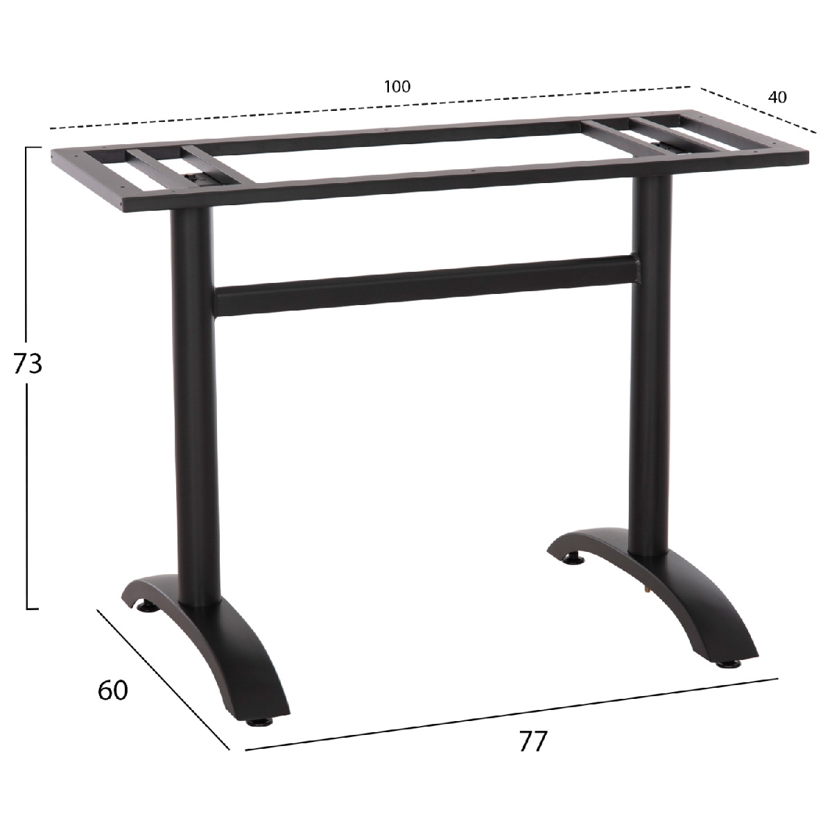 Η ΗΜ461.11 είναι βάση/πόδια για τραπέζι σε ΜΑΥΡΟ ΜΑΤ χρώμα. Αυτή η βάση είναι μεταλλική με δύο κολώνες (πόδια) τα οποία στηρίζονται σε αντίστοιχες μεταλλικές αψίδες. Το χαρακτηριστικό που κάνει αυτή την βάση ιδιαίτερα πρακτική είναι ότι στο κάτω μέρος των αψίδων διαθέτει ρυθμιστές ύψους (ρεγουλατόρους). Ιδανική πρόταση για συνδυασμό με επιφάνειες σχεδόν κάθε είδους, όπως βερσαλίτες, HPL, MDF, κτλ.<br />