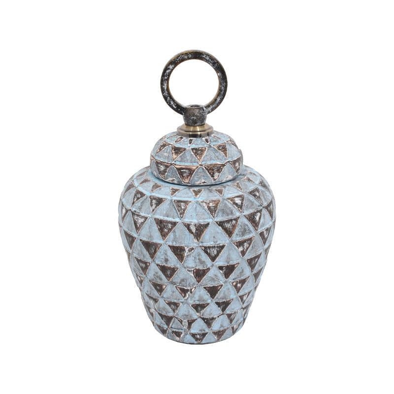 Βάζο Με Καπάκι Και Χερούλι 19077 0040-00-020 14,5x14,5x19cm Antique Ciel Μέταλλο,Κεραμικό