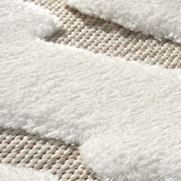 Η πυκνότητα του πέλους εξασφαλίζει όχι μόνο ζεστασιά αλλά και μια αίσθηση πολυτέλειας, ενώ η υφή τους ενισχύει την αισθητική του σαλονιού, προσδίδοντας μια κομψή και αρμονική εμφάνιση. Το βαμβάκι, ως φυσικό υλικό, επιτρέπει στο χαλί να είναι αναπνεύσιμο και εύκολο στη συντήρηση, διασφαλίζοντας μακροχρόνια χρήση και αντοχή.