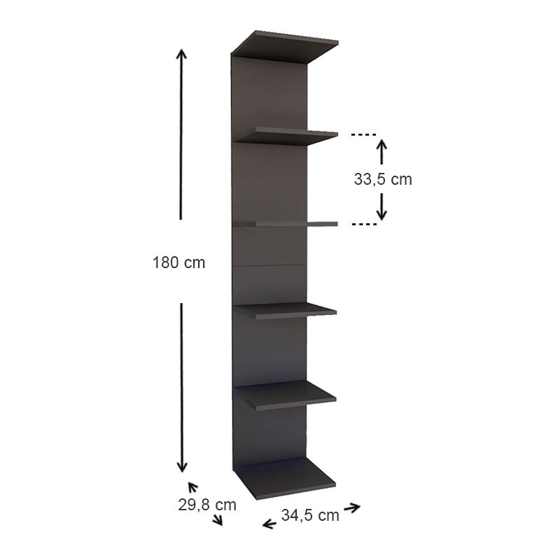 <strong>Βιβλιοθήκη - Ραφιέρα τοίχου μελαμίνης Ogden Megapap χρώμα ανθρακί 34,5x30x180εκ.</strong><br></span>