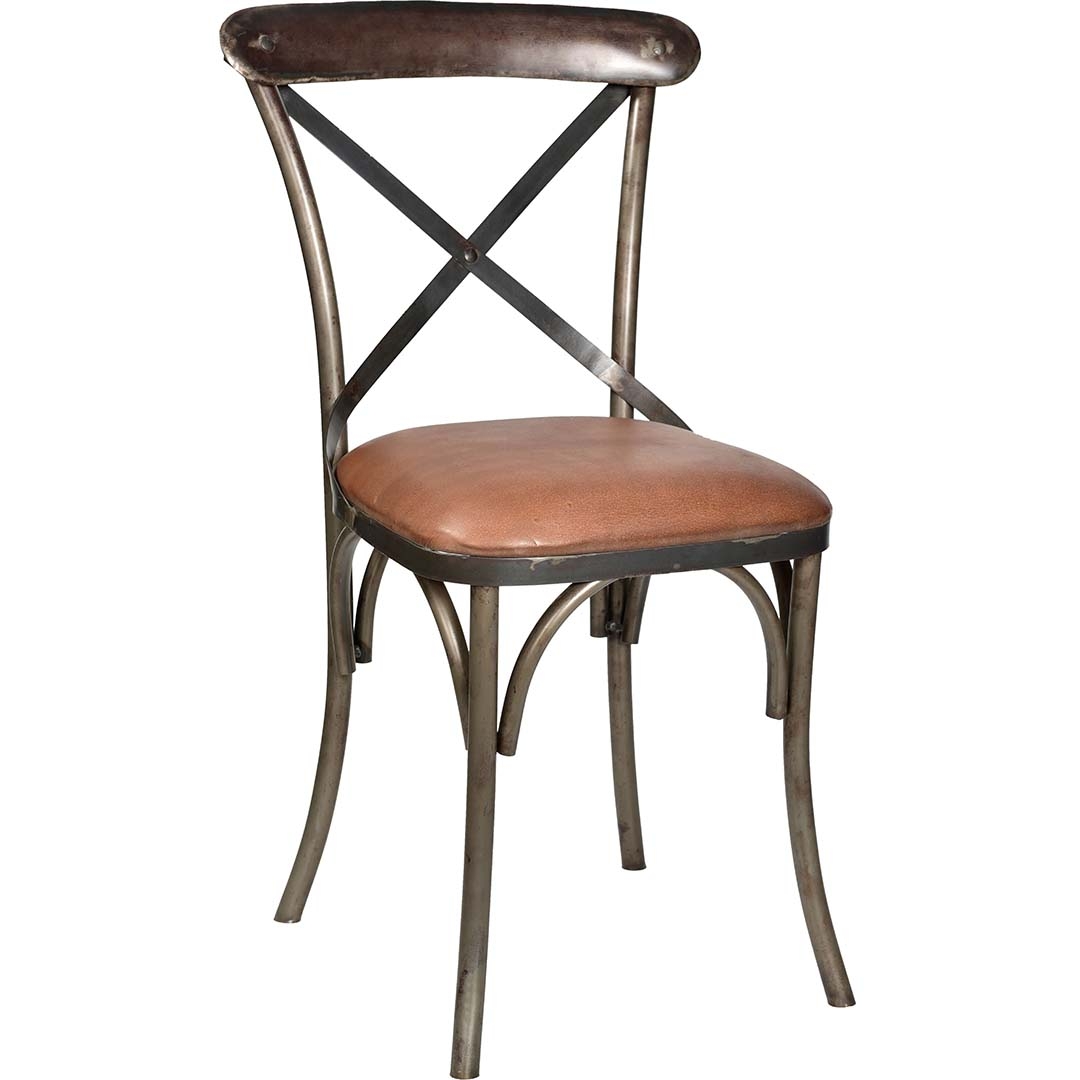 Bistro μεταλλική καρέκλα σε αντικέ απόχρωση με καφέ δερμάτινο κάθισμα 51x47x90 εκ