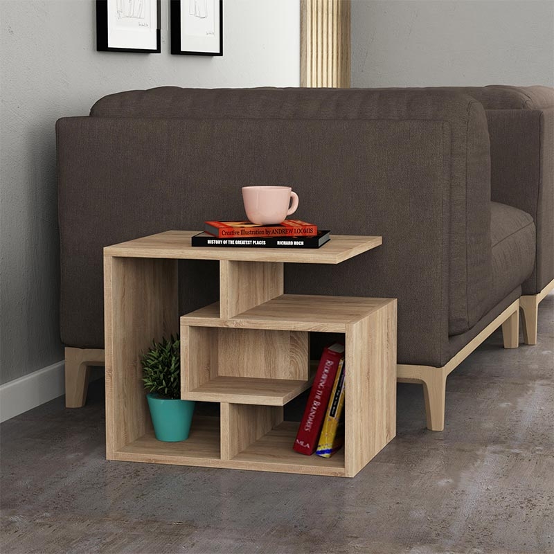 Βοηθητικό τραπεζάκι Labirent Megapap από μελαμίνη χρώμα φυσικό οξιάς 54x40x45εκ.