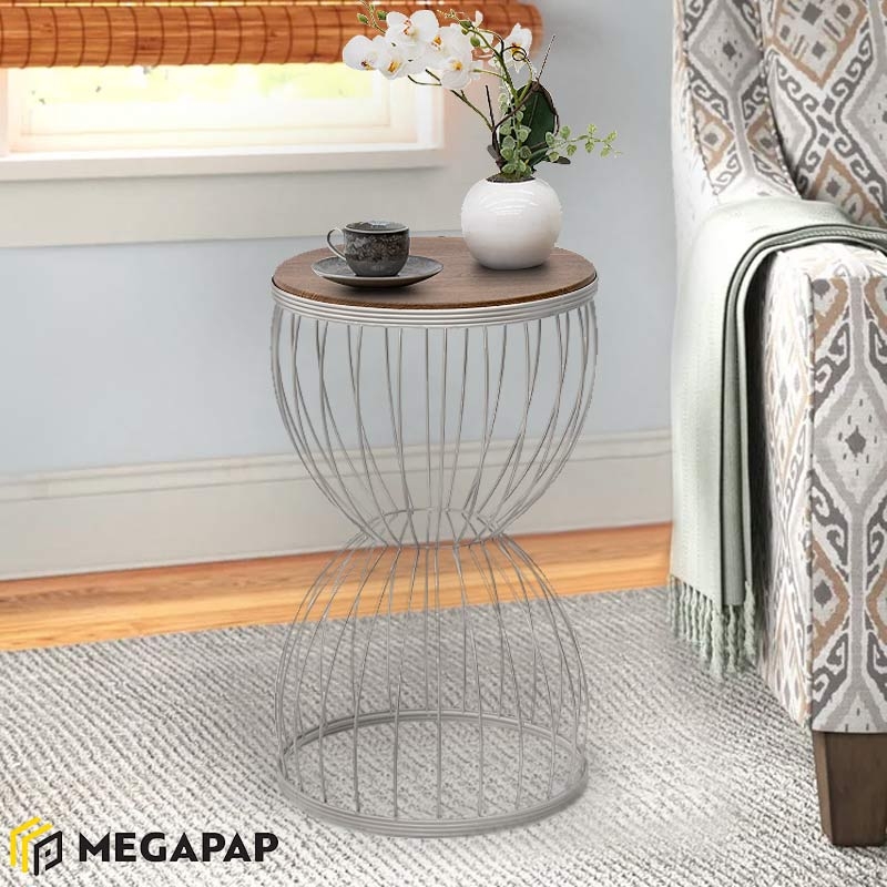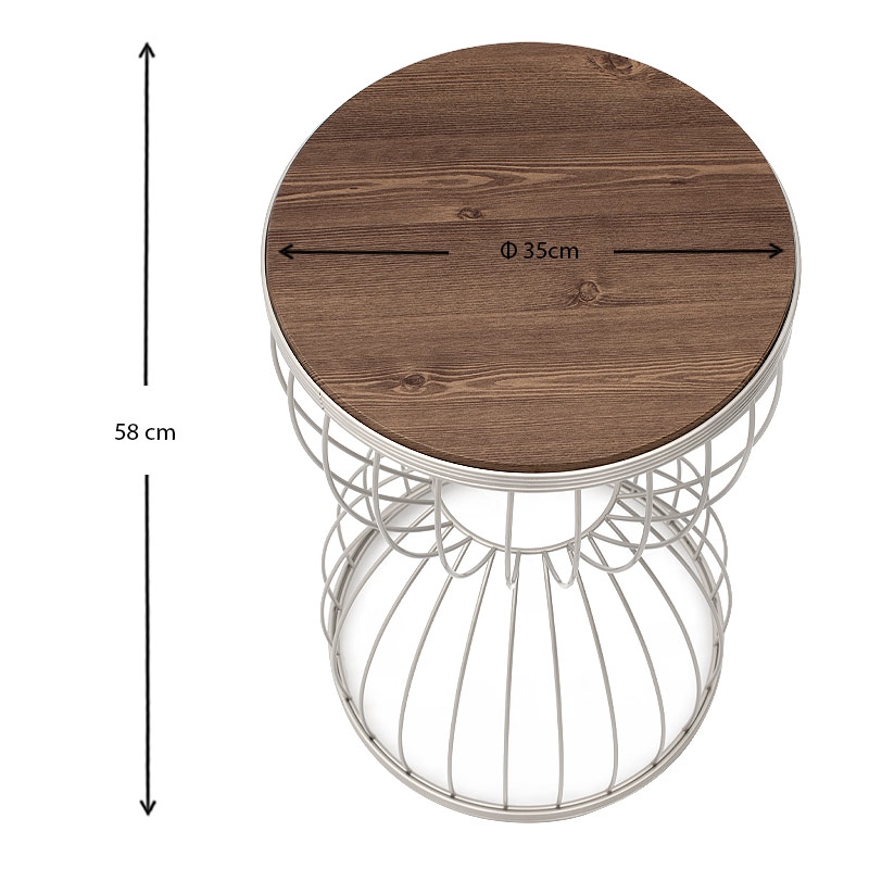 Βοηθητικό τραπεζάκι Pino Megapap μεταλλικό - Mdf χρώμα λευκό - καρυδί 35x35x58εκ.<br><br>