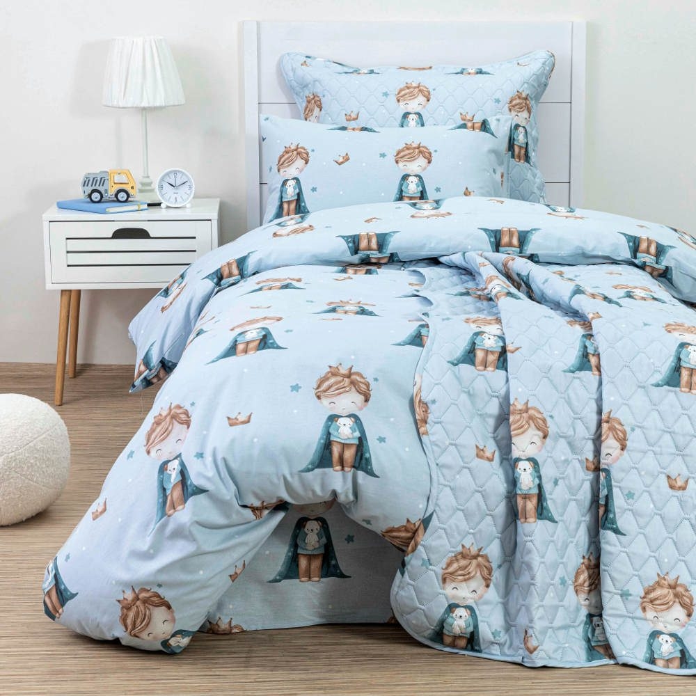 <p>Σετ κουβερλί μονό με μαξιλαροθήκη oxford style από ύφασμα microfiber,100% πολυέστερ, εμπριμέ, με γραμμικό μοτίβο και παιδικό σχέδιο πρίγκιπας.</p>