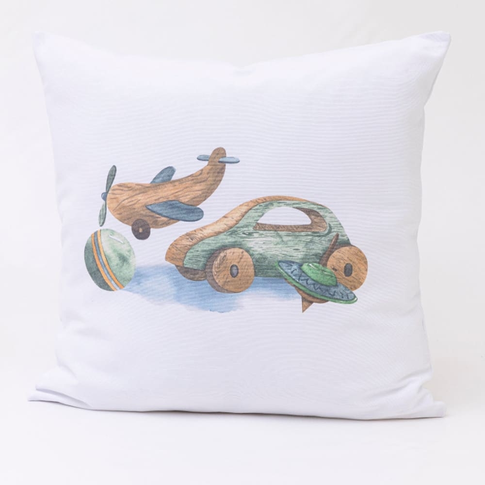 <p>Μαξιλάρι φιγούρας από ύφασμα λονέτα, 100% βαμβακερό, με φερμουάρ και ψηφιακή εκτύπωση, σχέδιο σχέδιο ξύλινα παιχνίδια.(Χωρίς γέμισμα)</p>