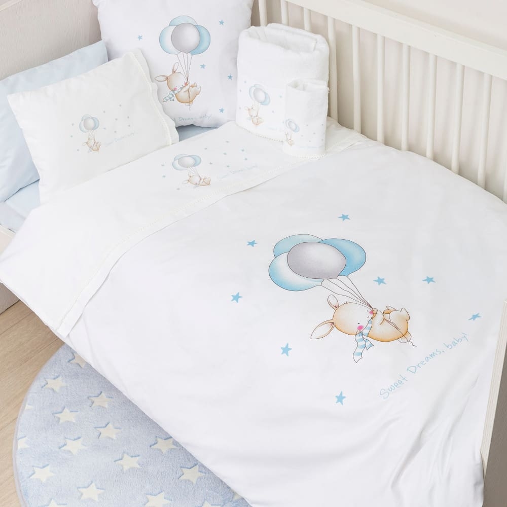<p>Μπουρνούζι βρεφικό/παιδικό με κουκούλα, κέντημα και σιέλ ρέλι περιμετρικά, στις τσέπες, τη ζώνη και τα μανίκια, από ύφασμα φροτέ πενιέ, 100% βαμβακερό, μονόχρωμο, λευκό, σχέδιο sweet dreams baby.</p>