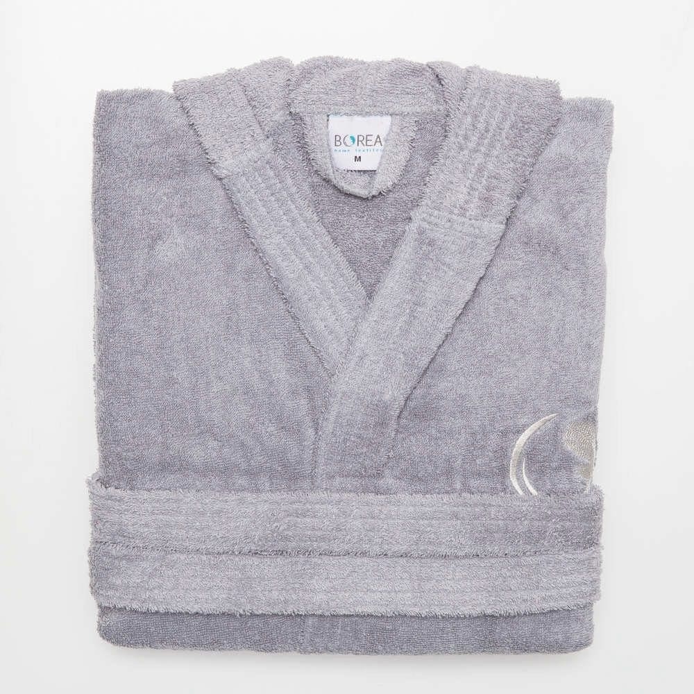 Borea Μπουρνούζι Ενηλίκων Με Κουκούλα Logo Γκρι M Γκρι