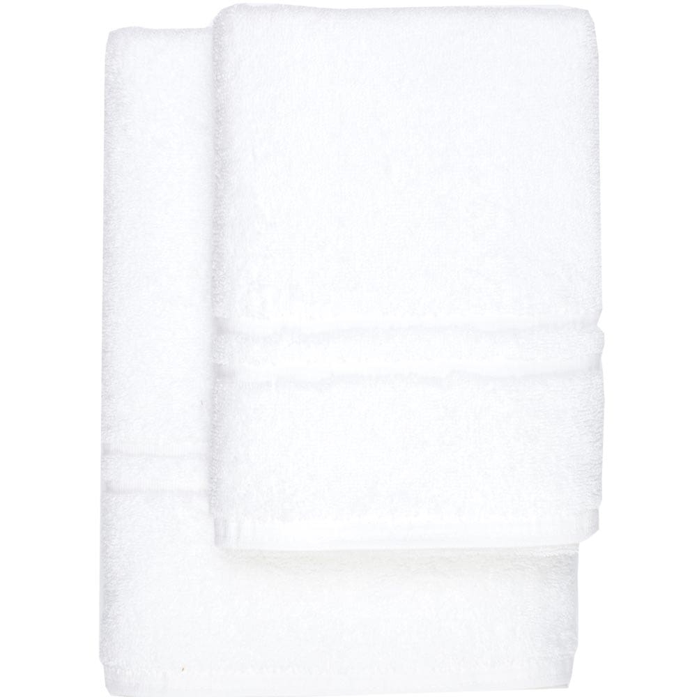 <p>Πετσέτα μπάνιου από ύφασμα φροτέ, πενιέ 450 γρ, 100% βαμβακερό, μονόχρωμη λευκή με μπορντούρα μονή ρίγα.</p>