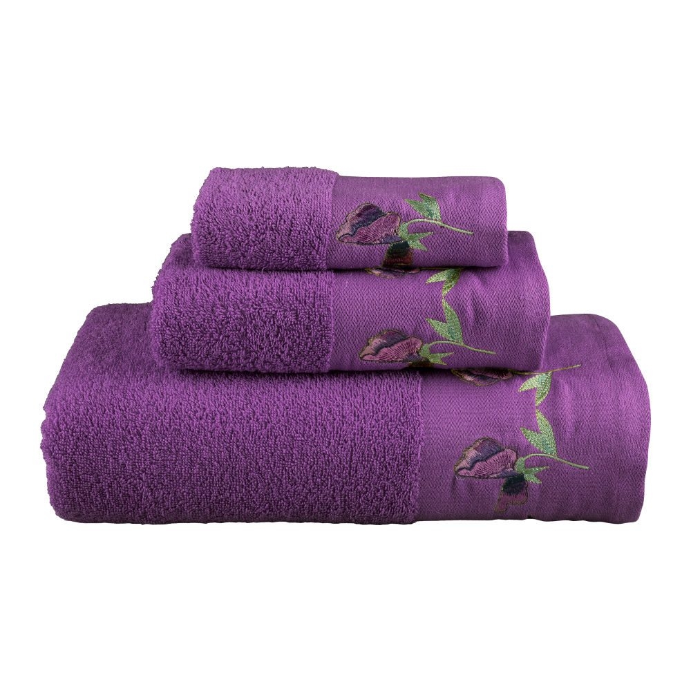 <p>Σετ πετσέτες 3 τεμαχίων, μπάνιου, προσώπου και χειρός, από ύφασμα φροτέ, πενιέ, 100% βαμβακερό, με κέντημα.Διατίθεται σε 4 χρώματα.</p>