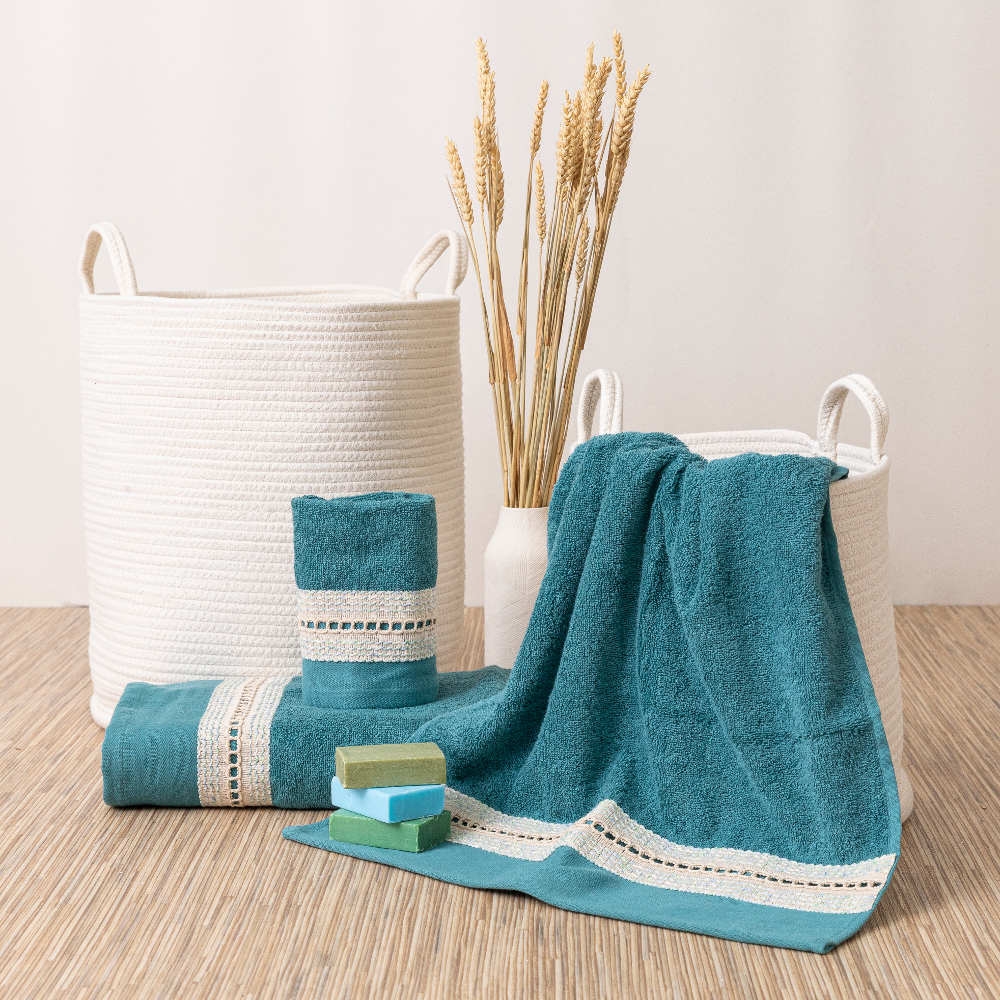 Borea Πετσέτες Σετ 3ΤΜΧ Waves 70 x 140 / 50 x 90 / 30 x 50 cm Πετρόλ