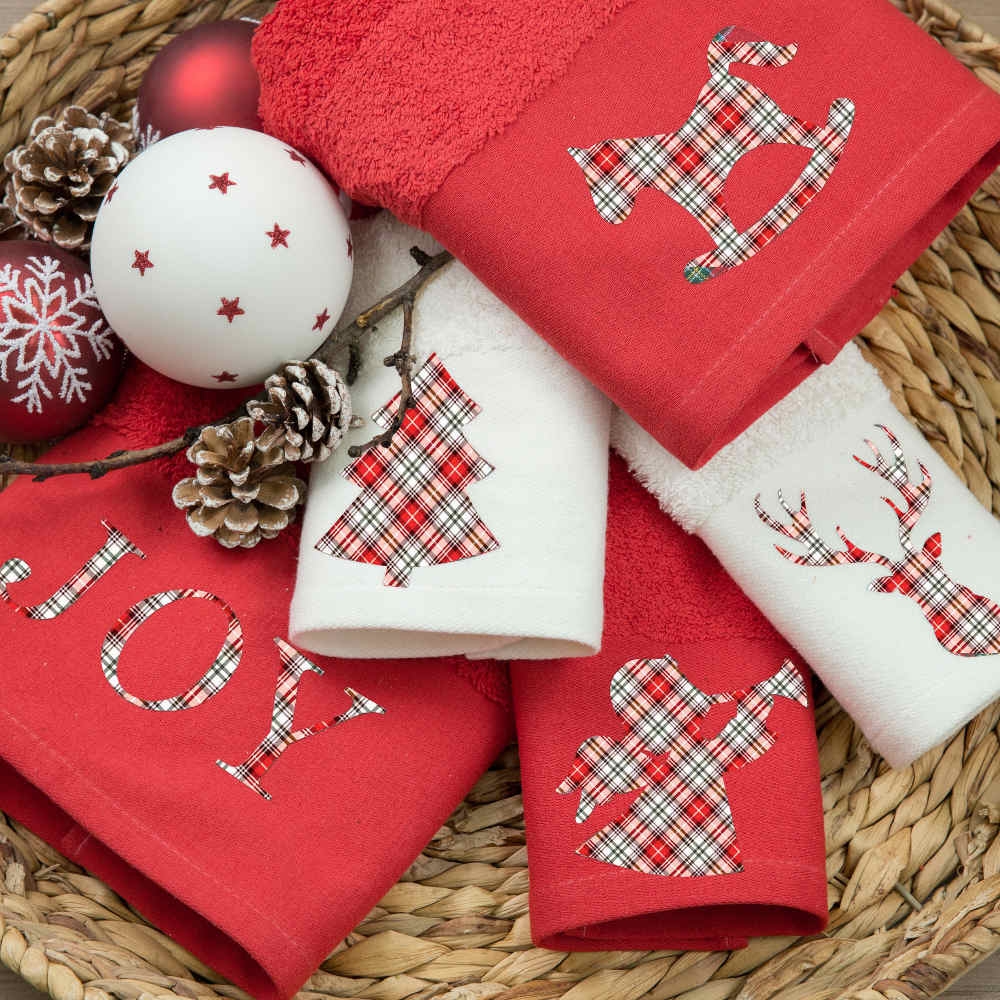 <p>Σετ πετσέτες 2 τεμαχίων, προσώπου και χειρός, από ύφασμα φροτέ, πενιέ, 100% βαμβακερό, με απλικέ χριστουγεννιάτικο.Διατίθεται σε 2 χρώματα.</p>