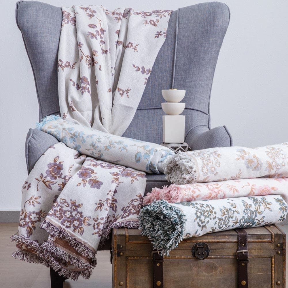 <p>Καλοκαιρινό ριχτάρι τετραθέσιο, από ύφασμα 100% βαμβακερό, φλοράλ, με κρόσσι. Διαθέσιμο σε 5 διαφορετικά χρώματα.</p>