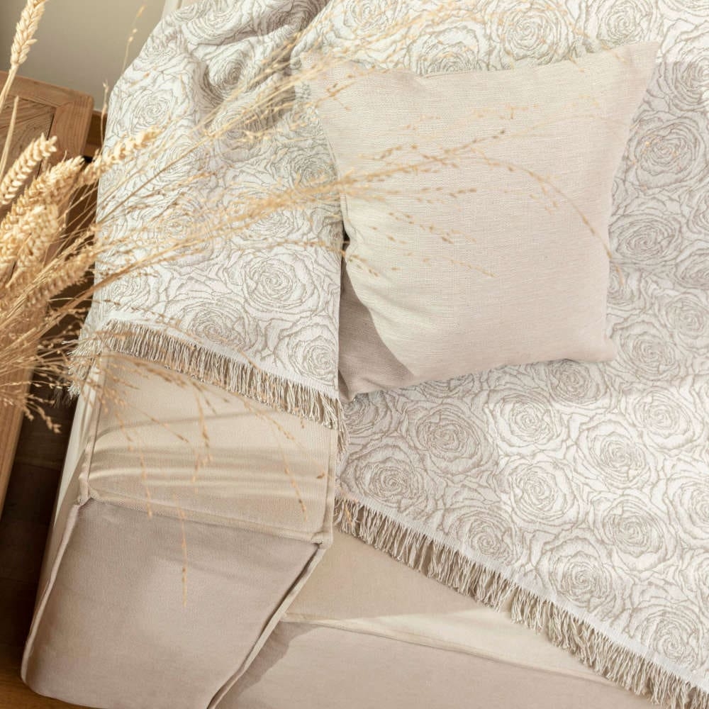 <p>Καλοκαιρινό ριχτάρι τριθέσιο, από ύφασμα 100% βαμβακερό, με κρόσσι. Διαθέσιμο σε 2 διαφορετικά χρώματα.</p>