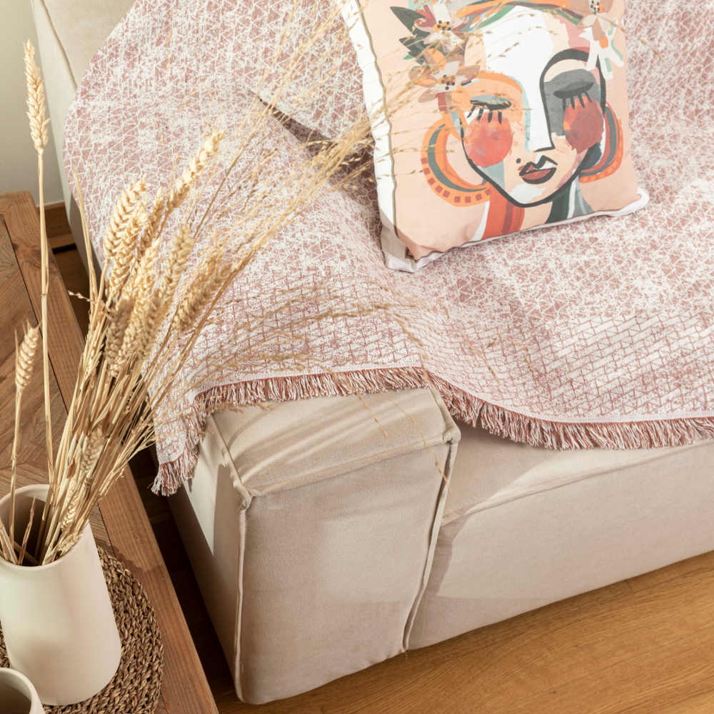 <p>Καλοκαιρινό ριχτάρι τριθέσιο, από ύφασμα 100% βαμβακερό, εμπριμέ με μπορντούρα και κρόσσι. Διαθέσιμο σε 4 διαφορετικά χρώματα.</p>