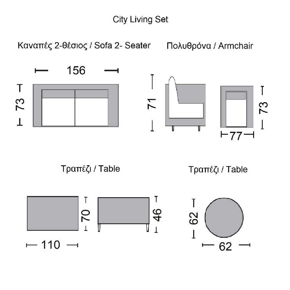 Ε6731 CITY Living Set (Τραπ+2θ+2Πολ+Βοηθ.Τρ) Alu Ανθρακί/Μπεζ<br>