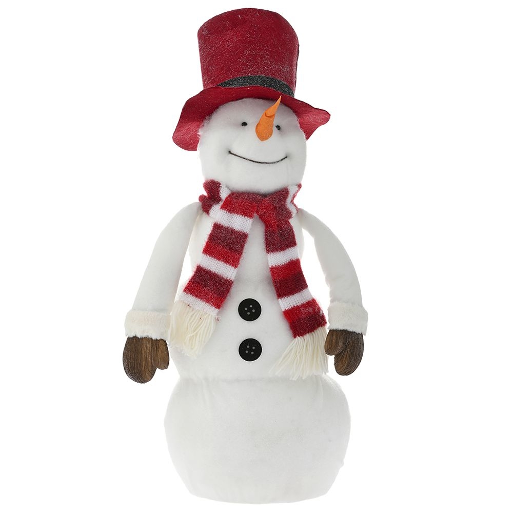 Διακοσμητική χριστουγεννιάτικη φιγούρα λευκός χιονάνθρωπος με κόκκινο σκούφο και κασκόλ 40x16x110 εκ