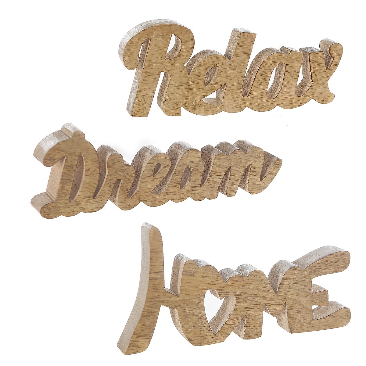 <p>Διακοσμητικό λέξη Relax/Home/Dream φυσικό ξύλο 20x8cm σε 3 σχέδια.</p>