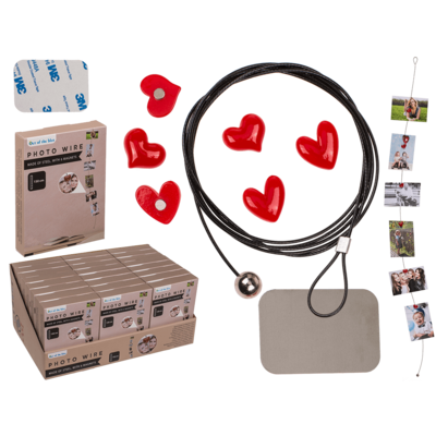 Διακοσμητικό σύρμα για φωτογραφίες με 6 μαγνήτες, Καρδιές 150 cm