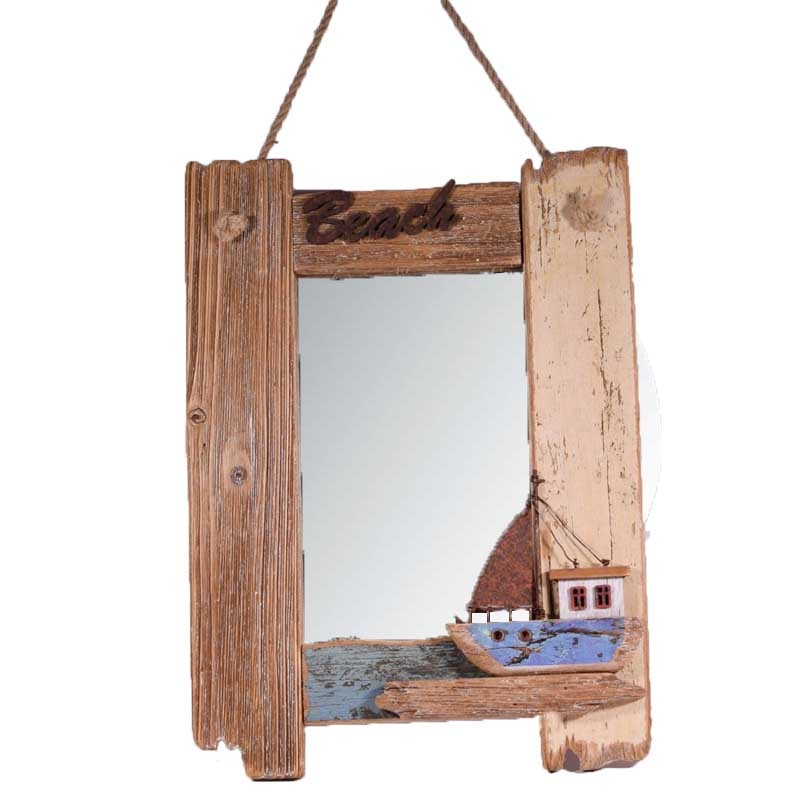Διακοσμητικός ξύλινος καθρέπτης beach με καραβάκι 29x4x40 εκ