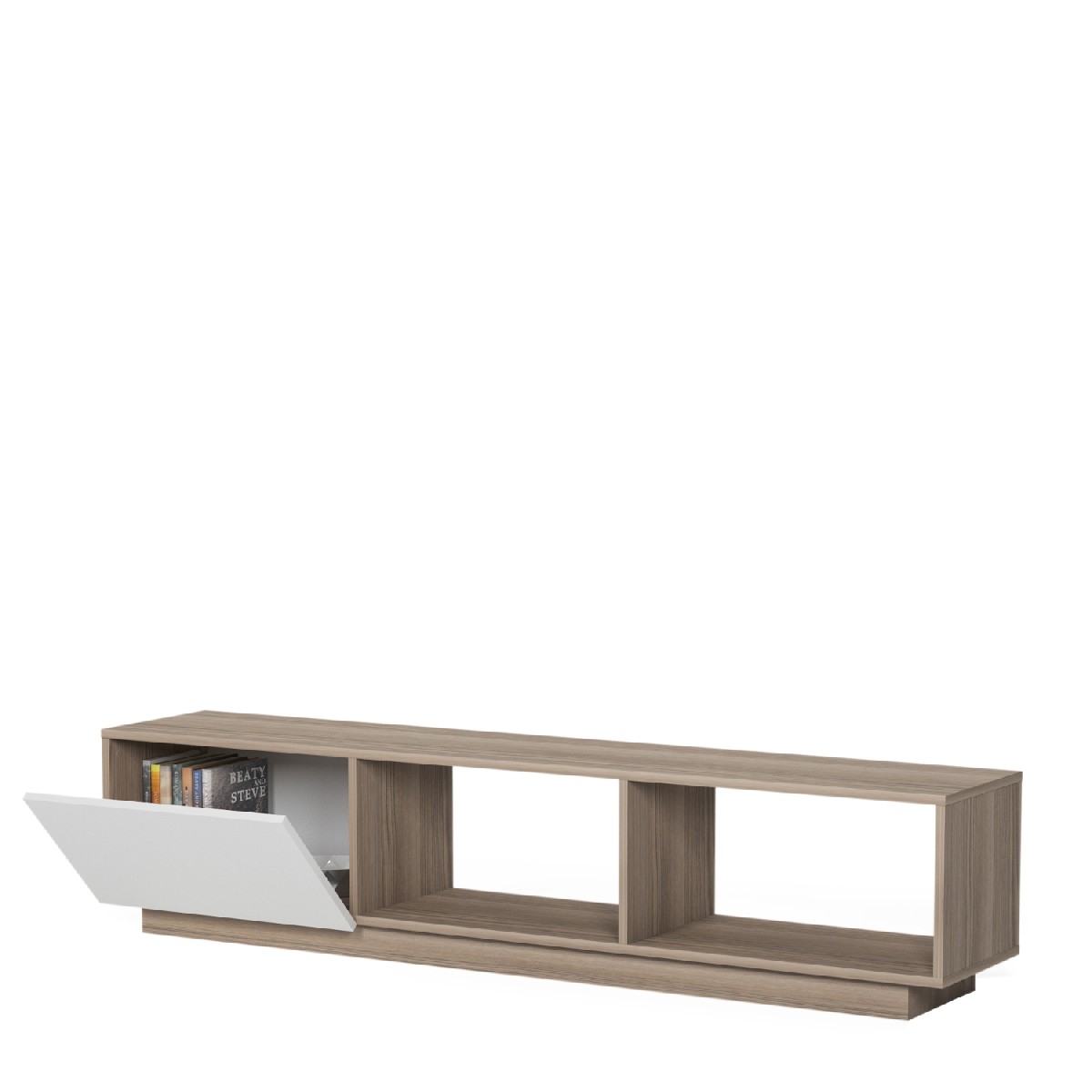 <li>Παρέχει δύο ανοιχτούς αποθηκευτικούς χώρους στην μια του πλευρά και ένα ανοιγόμενο προς τα κάτω ντουλάπι στην άλλη</li>