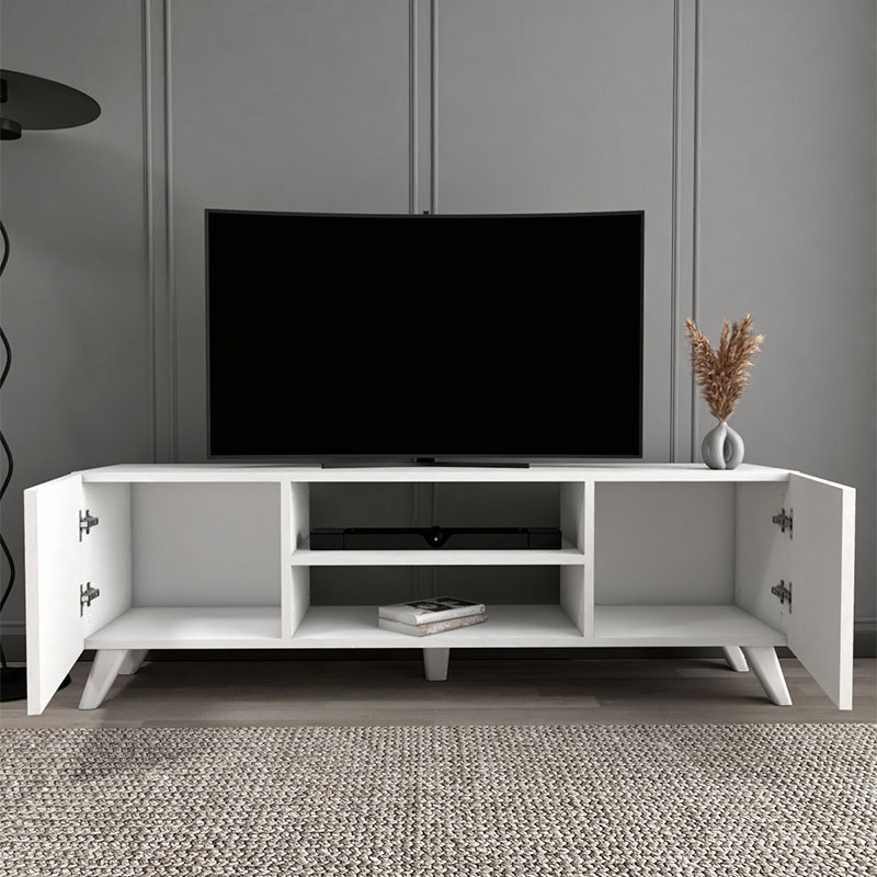 Έπιπλο τηλεόρασης Evelyn Megapap από μελαμίνη χρώμα λευκό 140x35x46εκ.<br></span>