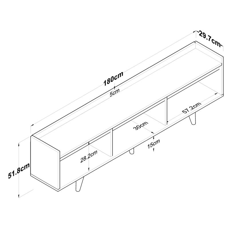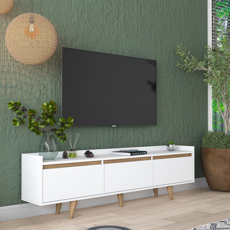 Έπιπλο τηλεόρασης Hafmi pakoworld λευκό-καρυδί μελαμίνη και ξύλινο πόδι σε φυσική απόχρωση 180x29.7x51.8εκ<br><br>Αν ψάχνετε ένα έπιπλο τηλεόρασης με ιδιαίτερο σχεδιασμό που θα κοσμήσει τον χώρο σας, τότε το Hafmi σας αφορά. Ένα έπιπλο εξαιρετικής κατασκευής που συνδυάζει εργονομία, ποιότητα και λειτουργικότητα. Ιδανικό για κάθε σαλόνι!<br><br>Τεχνικά χαρακτηριστικά:<br>* Κατασκευή από μοριοσανίδα με επένδυση μελαμίνης υψηλής ποιότητας, με αντοχή στην καταπόνηση, την φθορά και τον χρόνο. Η μελαμίνη LPB (Low Pressure Melamine) είναι ένα συνθετικό υλικό που χρησιμοποιείται ευρέως στην επιφανειακή επεξεργασία μοριοσανίδας στην κατασκευή επίπλων και επιφανειών, λόγω της ανθεκτικότητάς της και της ευκολίας στη συντήρηση. Εφαρμόζεται σε υποστρώματα όπως το MDF (Medium-density fibreboard/ινοσανίδα) ή το κόντρα πλακέ OSB για να παράγει ανθεκτικές επιφάνειες.<br>* Στήριξη σε ξύλινα πόδια φυσικού χρώματος.<br>* Προσφέρεται σε χρώμα λευκό-καρυδί-φυσικό.<br><br>Διάσταση προϊόντος:<br>Μήκος: 180 εκ.<br>Πλάτος: 29.7 εκ.<br>Ύψος: 51.8 εκ.<br><br>Παρατηρήσεις:<br>Το προϊόν παραδίδεται σε εργοστασιακή συσκευασία και με αναλυτικό οδηγό συναρμολόγησης.<br>Η χρωματική απόχρωση του προϊόντος ενδέχεται να διαφέρει ελαφρώς σε σχέση με την φωτογραφική απεικόνισή του στην οθόνη σας.<br>