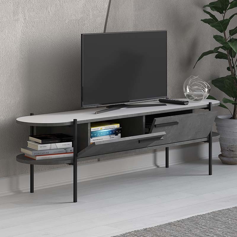 Έπιπλο τηλεόρασης Otis Megapap μελαμίνης χρώμα γκρι ρετρό - λευκό 160x35,6x45εκ.<br></span>