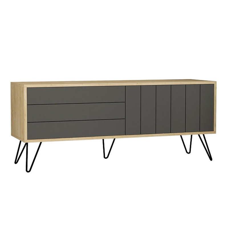 Έπιπλο τηλεόρασης Picadilly Megapap από μελαμίνη χρώμα φυσικό οξιάς/ανθρακί 139x36x57εκ.