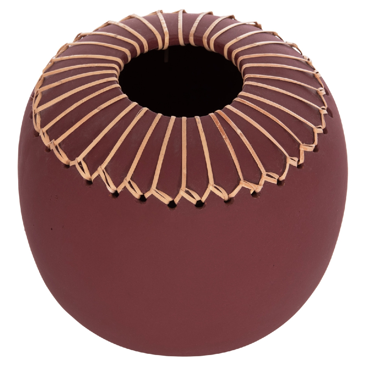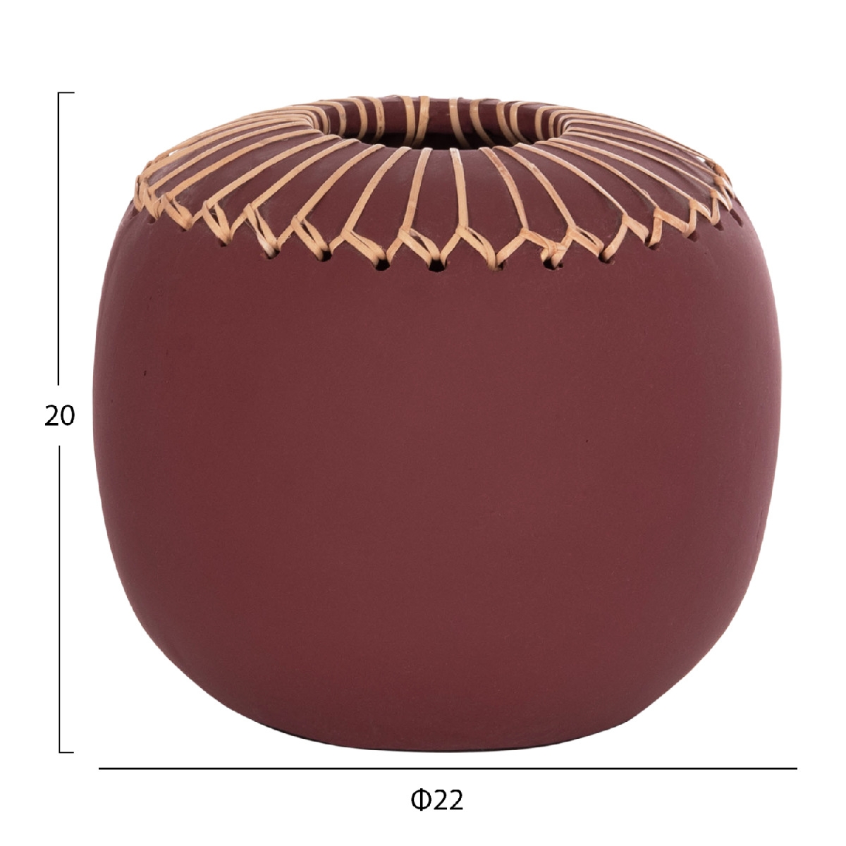 Το χειροποίητο επιτραπέζιο διακοσμητικό βάζο LENNOX είναι ένα όμορφο διακοσμητικό στοιχείο για κάθε χώρο. Είναι σχετικά κοντό αλλά φαρδύ και κατασκευασμένο εξολοκλήρου από τερακότα σε εντυπωσιακό ΒΥΣΣΙΝΙ χρώμα ενώ το στόμιο είναι διακοσμημένο με μια πλέξη από φυσικό rattan. Ιδανικό για πληθώρα χρήσεων και χώρων.<br />