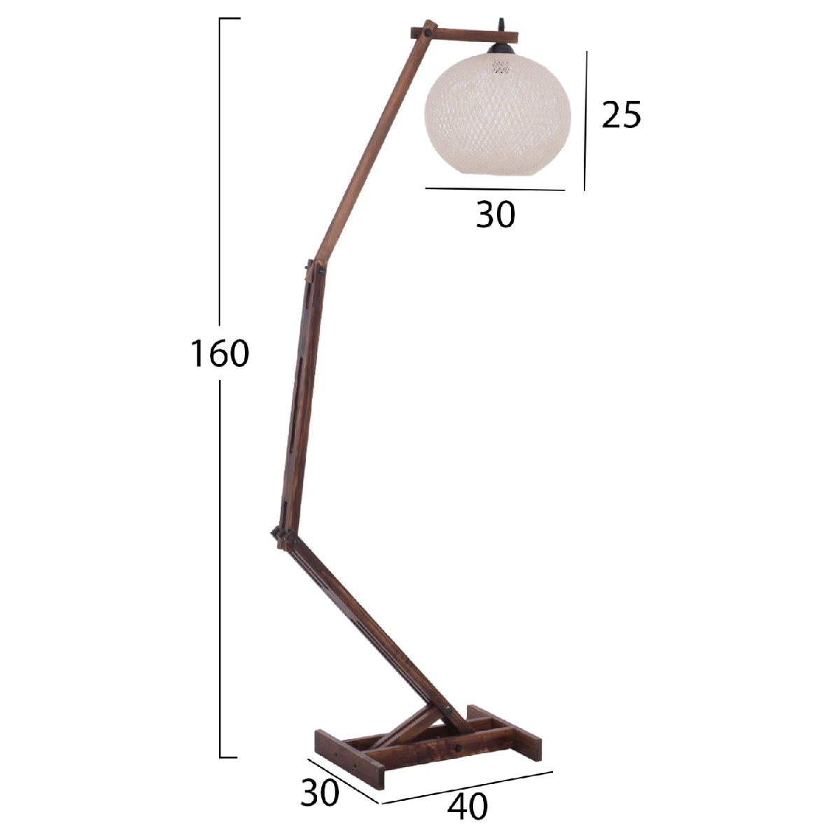 HM7701.01- φωτιστικό δαπέδου ----Ανακαλύψτε το ξεχωριστό αρθρωτό φωτιστικό δαπέδου. Αυτό το φωτιστικό σε στυλ ρουστίκ θα σας συναρπάσει. Διαθέτει ξύλινο σκελετό σε καρυδί χρώμα με αρθρωτή διάταξη, και το ύψος αλλά και όλη η παρουσία του είναι επιβλητική. Το πλεκτό σφαιρικό καπέλο από σχοινί είναι σε ΜΠΕΖ χρώμα και διαχέει το φως γλυκά δημιουργώντας την ατμόσφαιρα που πάντα φανταζόσασταν για τον χώρο σας, έτσι ώστε να φτιάξετε την δική σας γωνιά χαλάρωσης ή ακόμα και διακόσμησης. Διότι το φως, σημαίνει κάτι περισσότερο από ένα φωτιστικό. Σημαίνει διακόσμηση, ατμόσφαιρα, τέχνη, μεράκι, και φυσικά επιστήμη. <br />
