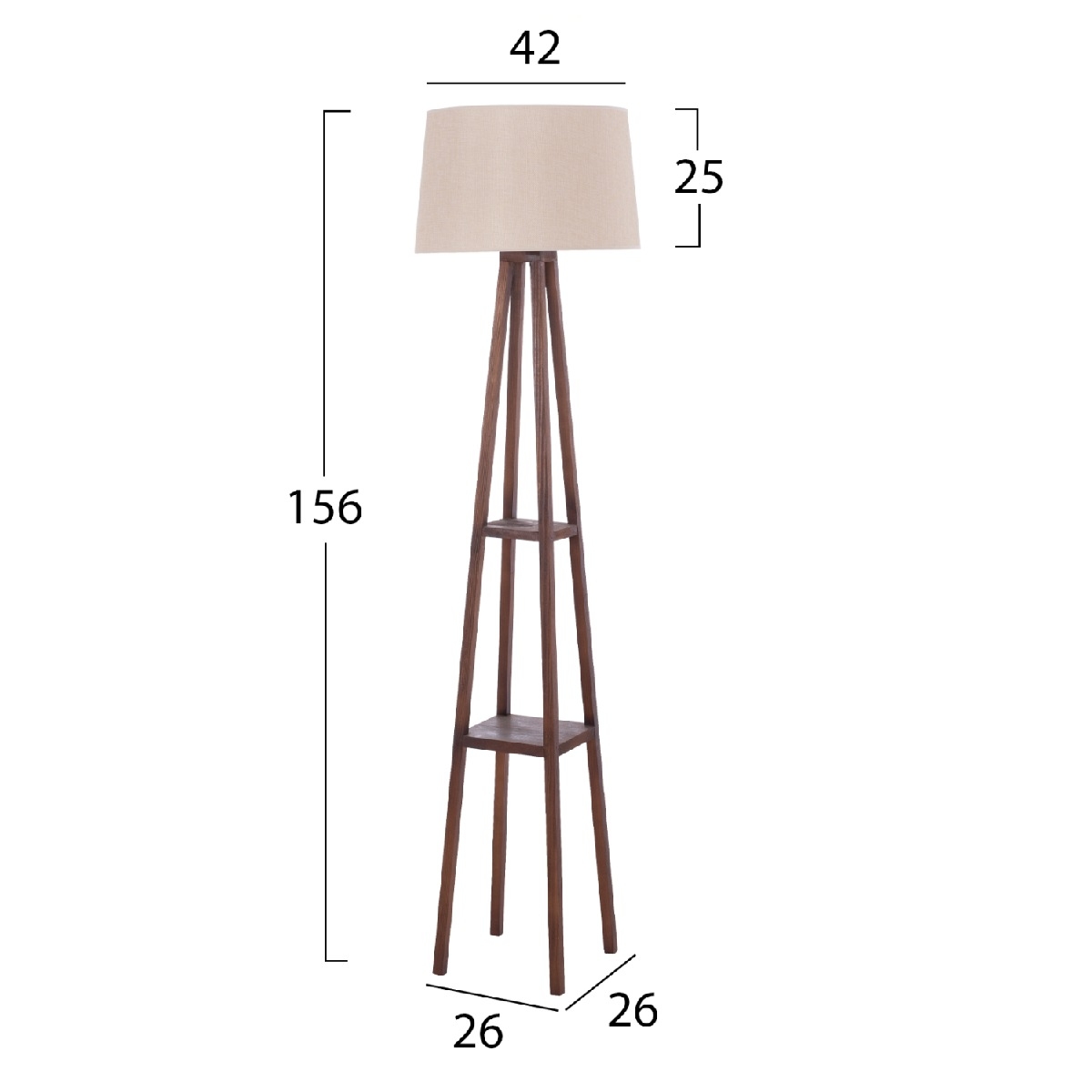 HM7695.01- φωτιστικό δαπέδου ----Ανακαλύψτε ένα μοναδικό φωτιστικό δαπέδου σε στυλ ρουστίκ που θα σας συναρπάσει. Διαθέτει ξύλινο σκελετό σε καρυδί χρώμα με λεπτό πυραμιδωτό σχήμα με δύο ραφάκια, και το ύψος αλλά και όλη η παρουσία του είναι επιβλητική. Το κυλινδρικό καπέλο είναι σε ΜΠΕΖ χρώμα και διαχέει το φως γλυκά δημιουργώντας την ατμόσφαιρα που πάντα φανταζόσασταν για τον χώρο σας, έτσι ώστε να φτιάξετε την δική σας γωνιά χαλάρωσης ή ακόμα και διακόσμησης. Διότι το φως, σημαίνει κάτι περισσότερο από ένα φωτιστικό. Σημαίνει διακόσμηση, ατμόσφαιρα, τέχνη, μεράκι, και φυσικά επιστήμη. <br />