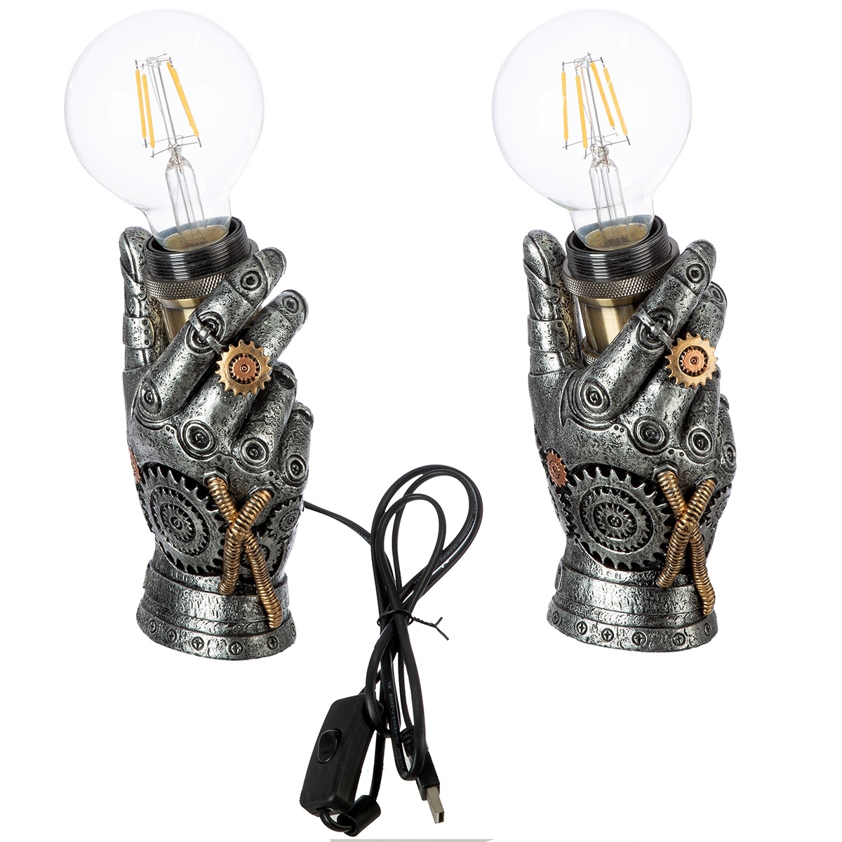 <p><p>Επιτραπέζιο φωτιστικό LED σε εντυπωσιακό σχέδιο χεριού με industrial steampunk αισθητική. Κατασκευασμένο από συνθετική ρητίνη, διαθέτει καλώδιο USB για εύκολη σύνδεση σε υπολογιστή, power bank ή αντάπτορα. Ιδανικό για θεματικούς και μοντέρνους χώρους.</p><p></p><br/><br/>