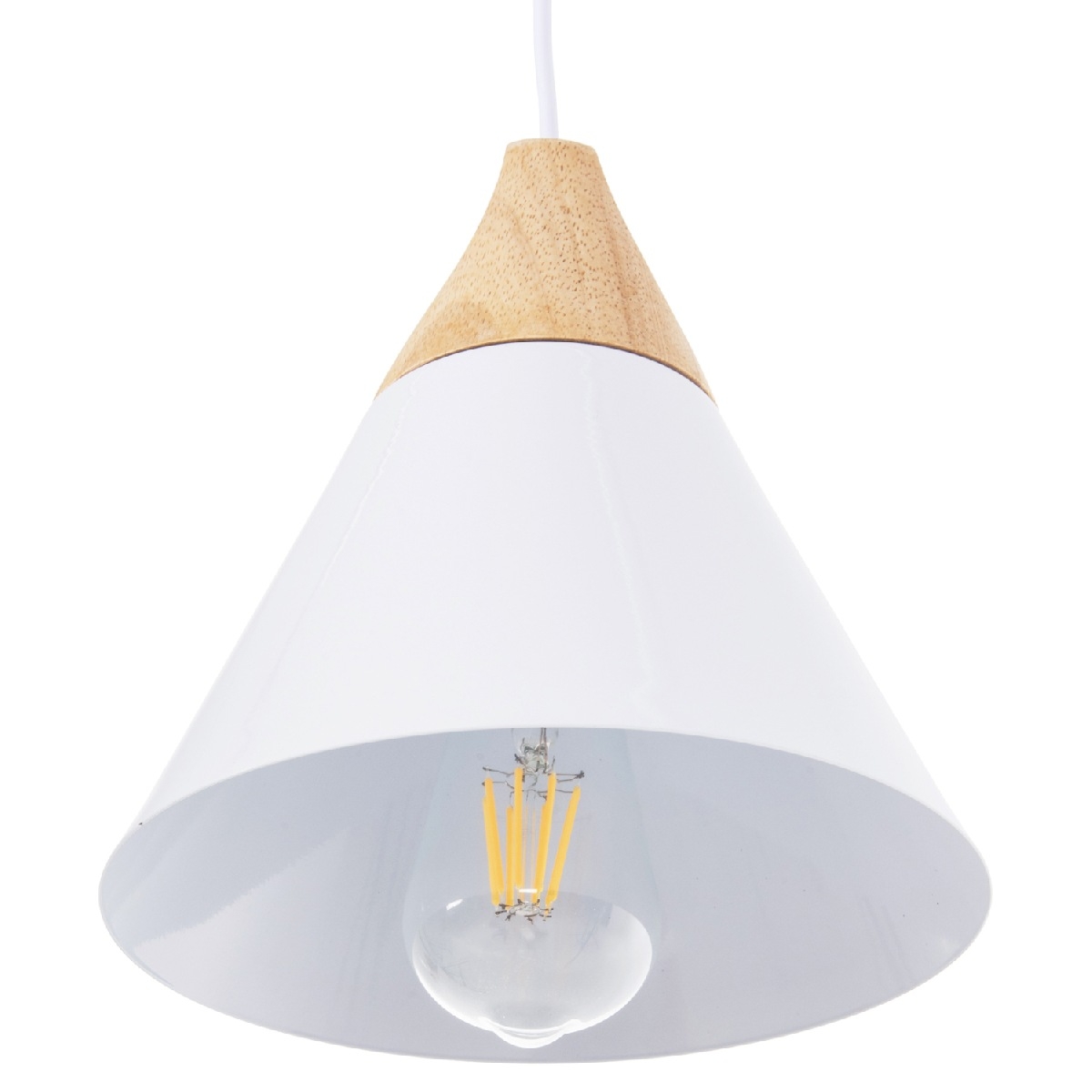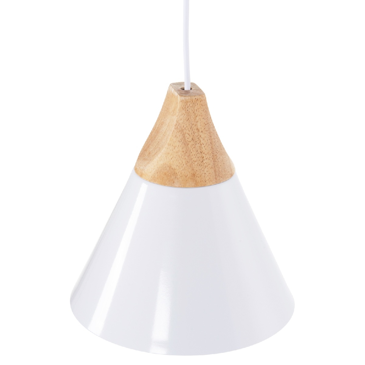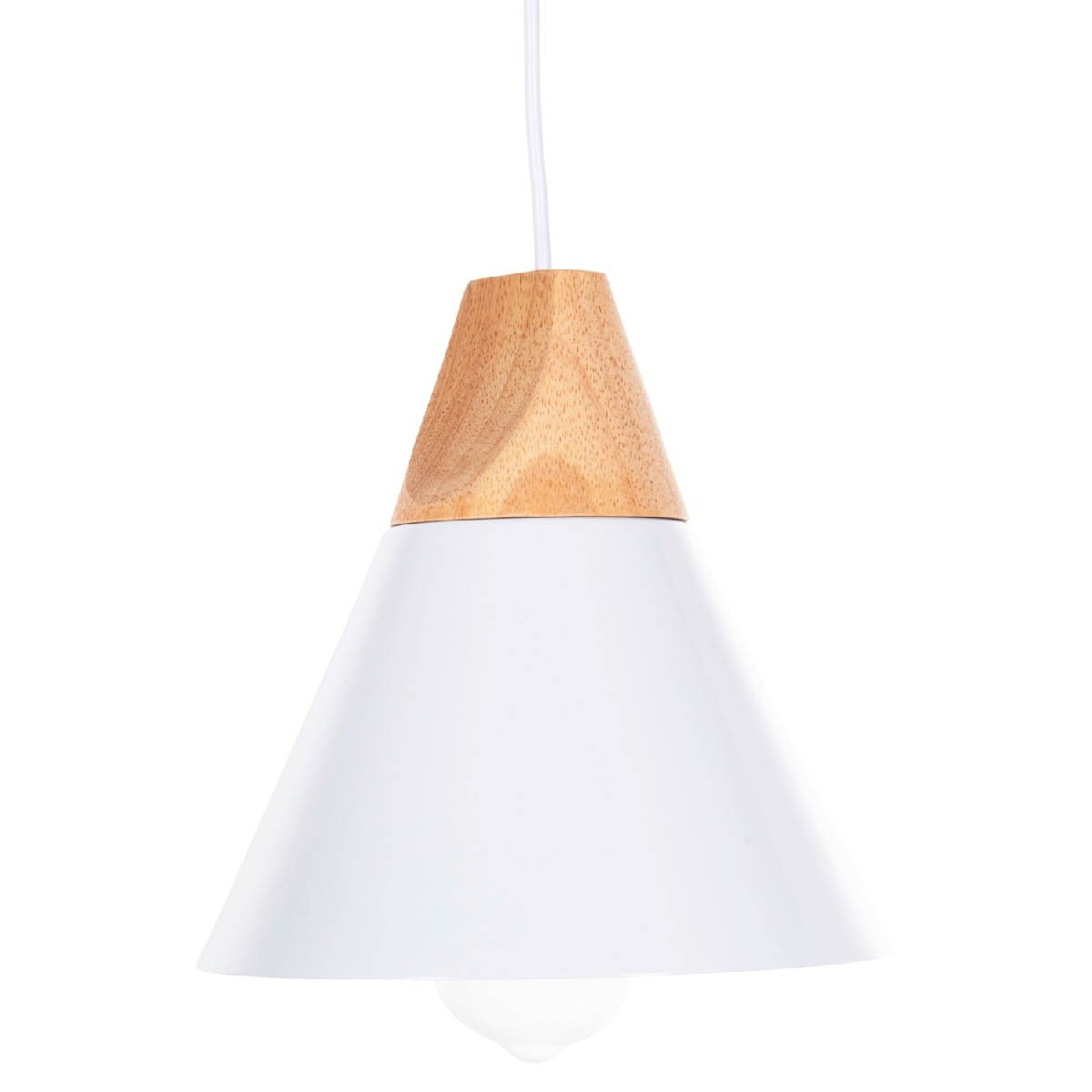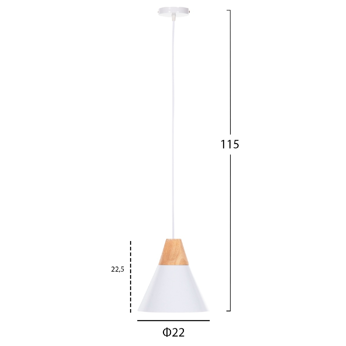 Ανακαλύψτε αυτό το νέο μας κρεμαστό φωτιστικό οροφής και ολοκληρώστε την διακόσμησή σας. Πρόκειται για ένα φωτιστικό με ΛΕΥΚΟ μεταλλικό καπέλο σε σχήμα κωνικής καμπάνας με λεπτομέρεια ξύλου στην κορυφή του φωτιστικού. Αισθητικά, ολοκληρώνεται με το επίσης ΛΕΥΚΟ καλώδιο κρέμασης και την λευκή βάση οροφής, και αποτελεί την τελευταία τάση στα φωτιστικά οροφής.<br />