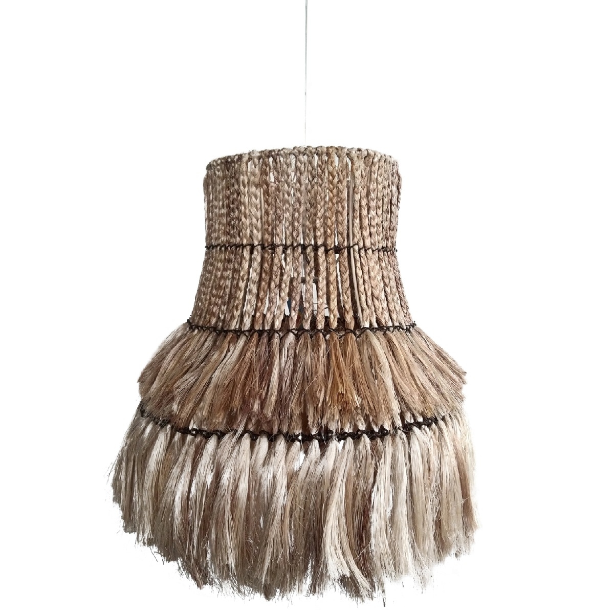 Hm7770- Kρεμαστό φωτιστικό---- Αν επιθυμείτε να διακοσμήσετε το χώρο σας με ένα φωτιστικό σε boho στυλ, αυτό είναι μια χαρακτηριστική επιλογή. Είναι ένα μονόφωτο φωτιστικό με «καπέλο» σε σχήμα bottleneck φτιαγμένο από ίνες κάνναβης Μανίλας σε φυσικό χρώμα. Το ιδιαίτερο χαρακτηριστικό αυτού του φωτιστικού είναι ότι στο επάνω μέρος του καπέλου οι ίνες είναι πλεγμένες σαν σχοινί δίνοντας μια άλλη αισθητική στο φωτιστικό.<br />