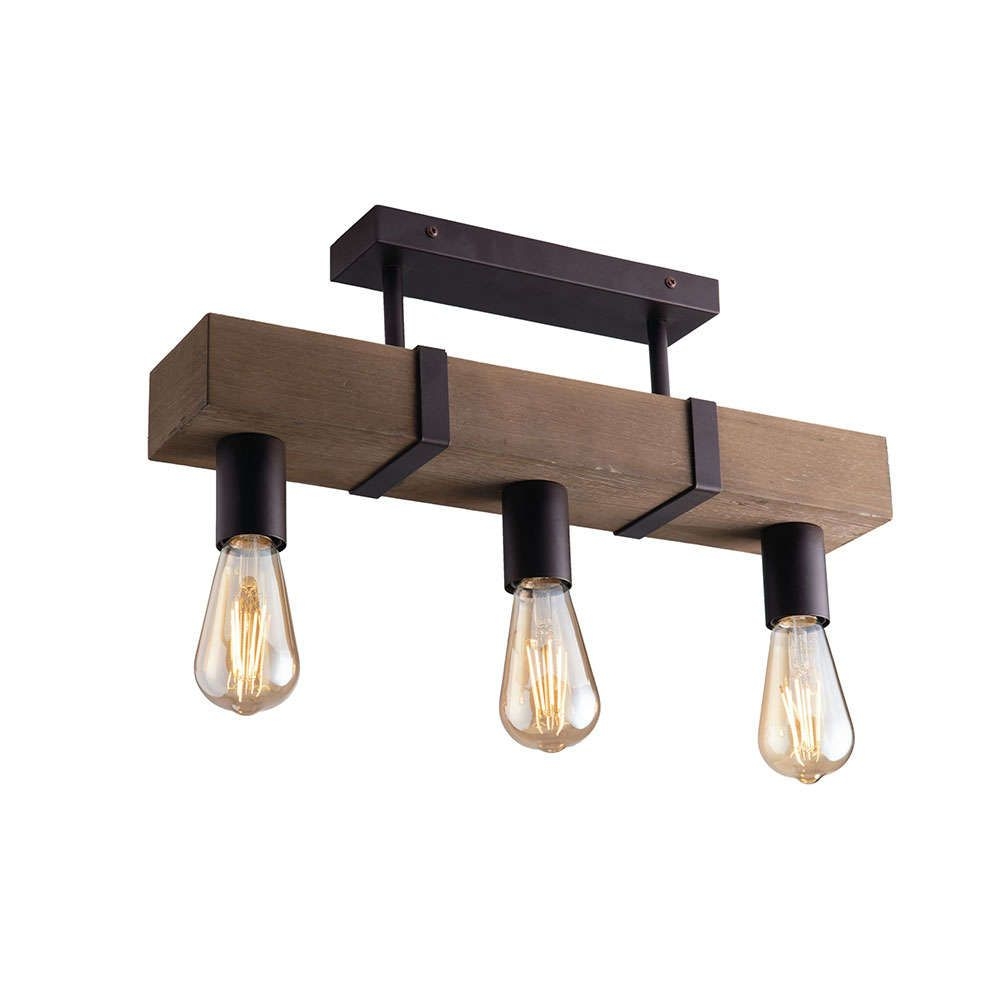 Φωτιστικό Οροφής - Πλαφονιέρα I-Texas-PL3 Natural-Black Luce Ambiente Design Μέταλλο,Ξύλο
