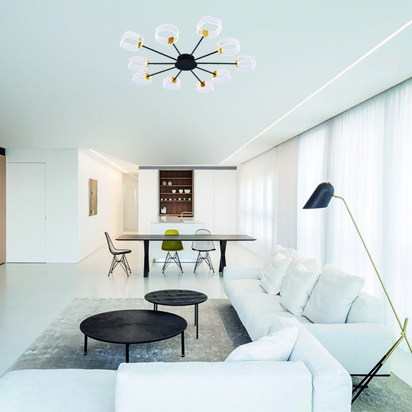 <p><span style="font-size:14px"><span style="font-family:verdana,geneva,sans-serif">Φωτιστικό οροφής πλαφονιέρα δεκάφωτο κατασκευασμένο από μέταλλο, ακρυλικό και αλουμίνιο σε συνδυασμό χρωμάτων μαύρο-χρυσό. </span></span><span style="font-family:verdana,geneva,sans-serif; font-size:14px">Με μοντέρνο στυλ και απλή γραμμή εξασφαλίζει άπλετο φωτισμό στο χώρο σας.</span><span style="font-size:14px"><span style="font-family:verdana,geneva,sans-serif"> Διαθέτει ενσωματωμένο LED με ισχύ 100W και απόδοση 7500 Lumen σε θερμό λευκό χρώμα 3000Κ.</span></span></p>