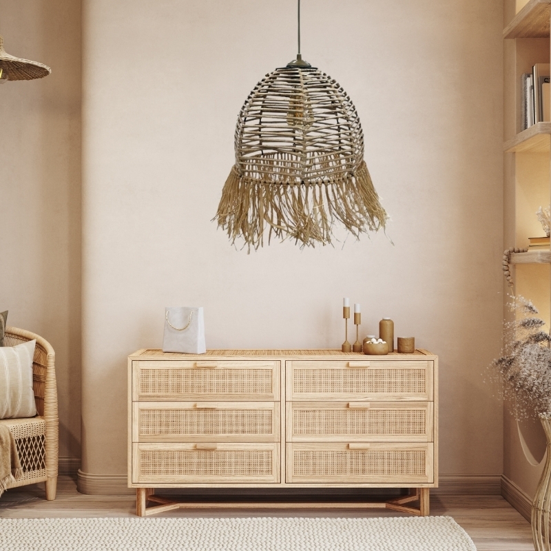 <li>Κατασκευασμένο από σχοινί και σιζάλ αντοχής, ειδικά σχεδιασμένα για φωτιστικά.</li>