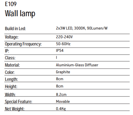 <p><span style="font-size:14px"><span style="font-family:verdana,geneva,sans-serif">Απλίκα εξωτερικού χώρου με ενσωματωμένο Led για άμεσο και έμμεσο φωτισμό με ρυθμιζόμενη δέσμη από αλουμίνιο σε χρώμα γραφίτη.</span></span></p>