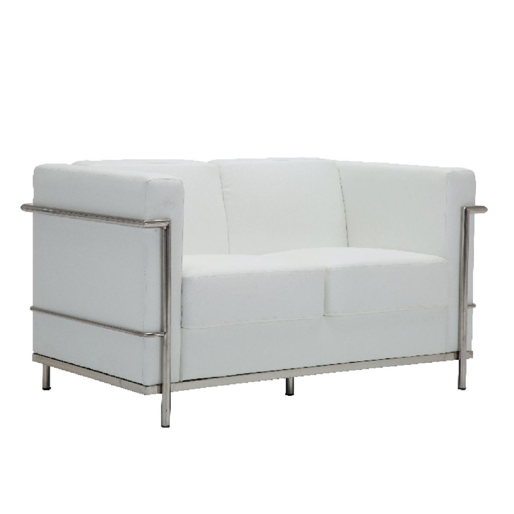 Ε947,21 GENOVA Καναπές 2-θέσιος Inox/Pu Άσπρο<br>