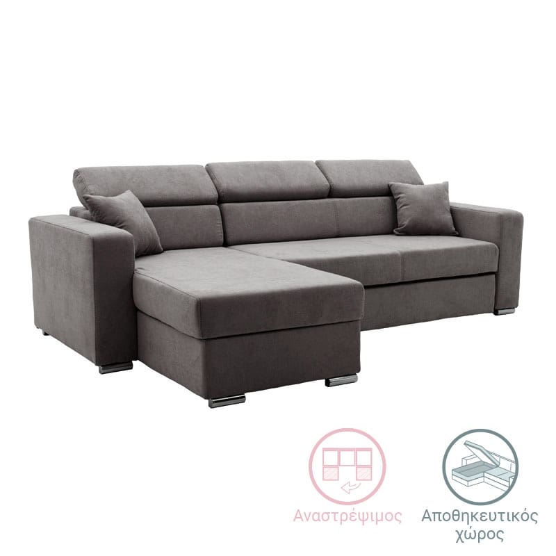 Γωνιακός καναπές-κρεβάτι αναστρέψιμος Lura pakoworld ανθρακί 255x162x75-90εκ</p>