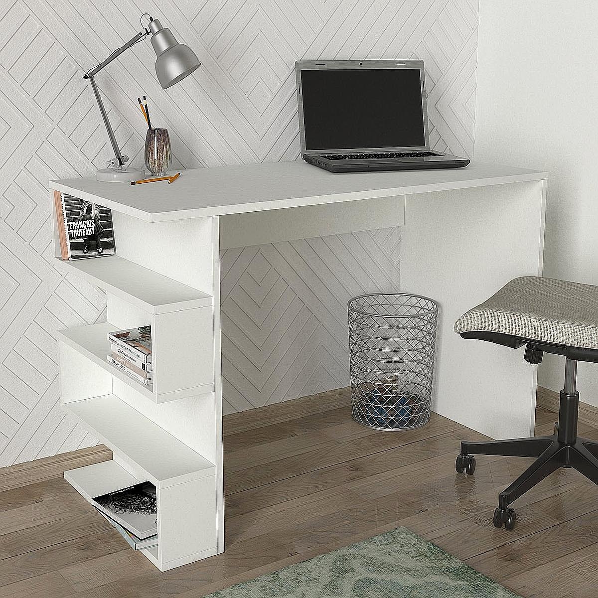 <p>Γραφείο με στιβαρό σκελετό που εξασφαλίζει μια σταθερή επιφάνεια εργασίας. Η επιφάνεια εργασίας προσφέρει μεγάλο χώρο για να κάνετε τις καθημερινές σας εργασίες άνετα και γρήγορα. Η ραφιέρα στη μια πλευρά του προσφέρει άπλετο αποθηκευτικό χώρο για την αποθήκευση βιβλίων, εγγράφων και χρηστικών αντικειμένων.</p>