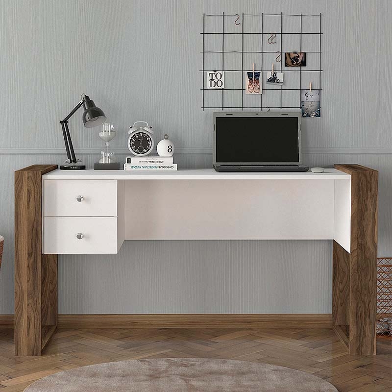 Γραφείο εργασίας Fernando Megapap από μελαμίνη χρώμα λευκό - καρυδί 158,4x60x72,2εκ.<br></span>