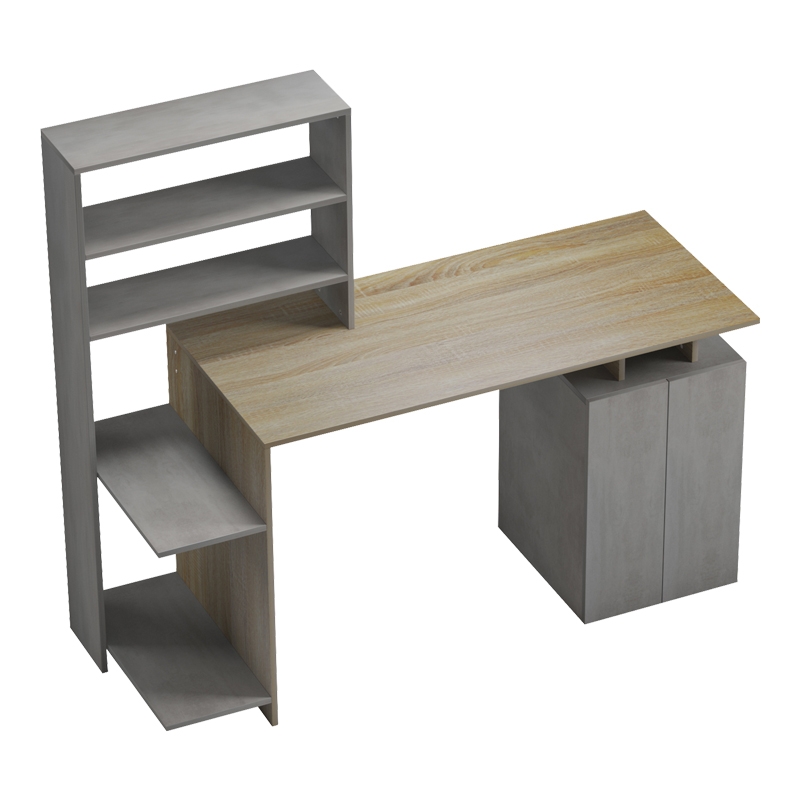 Το γραφείο εργασίας Meza συνδυάζει τη λειτουργικότητα και το σύγχρονο σχεδιασμό. Διαθέτει ένα ευρύχωρο γραφείο εργασίας, ιδανικό για υπολογιστή, μια ενσωματωμένη βιβλιοθήκη που προσφέρει άπλετο αποθηκευτικό χώρο για βιβλία, διακοσμητικά αντικείμενα ή φακέλους. Το μινιμαλιστικό του σχέδιο και τα ουδέτερα χρώματα το καθιστούν εύκολο να ταιριάξει σε οποιοδήποτε χώρο.