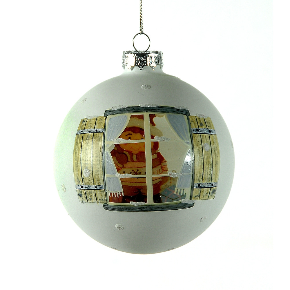 Γύψινη Χριστουγεννιάτικη μπάλα λευκή ματ με παράσταση 9 εκ