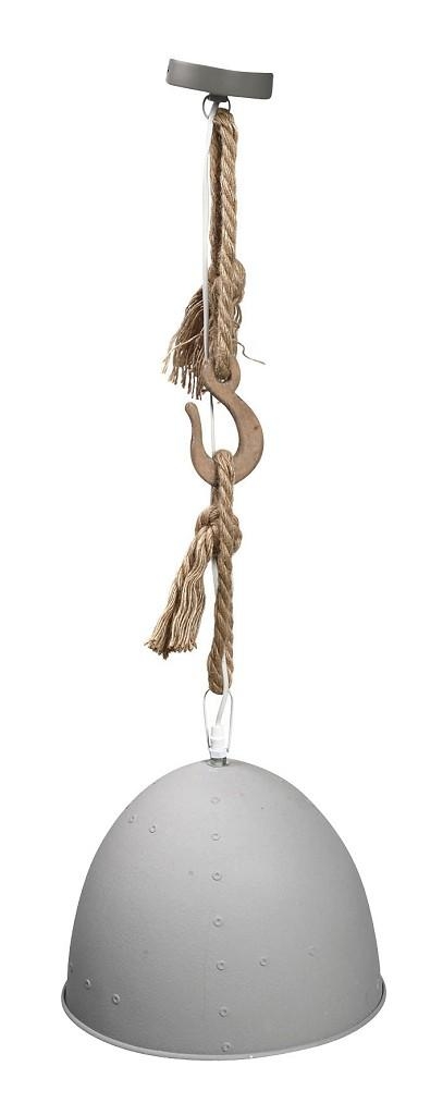 Industrial φωτιστικό οροφής με μεταλλικό καπέλο σε γκρι χρώμα και σχοινί 25x31 εκ