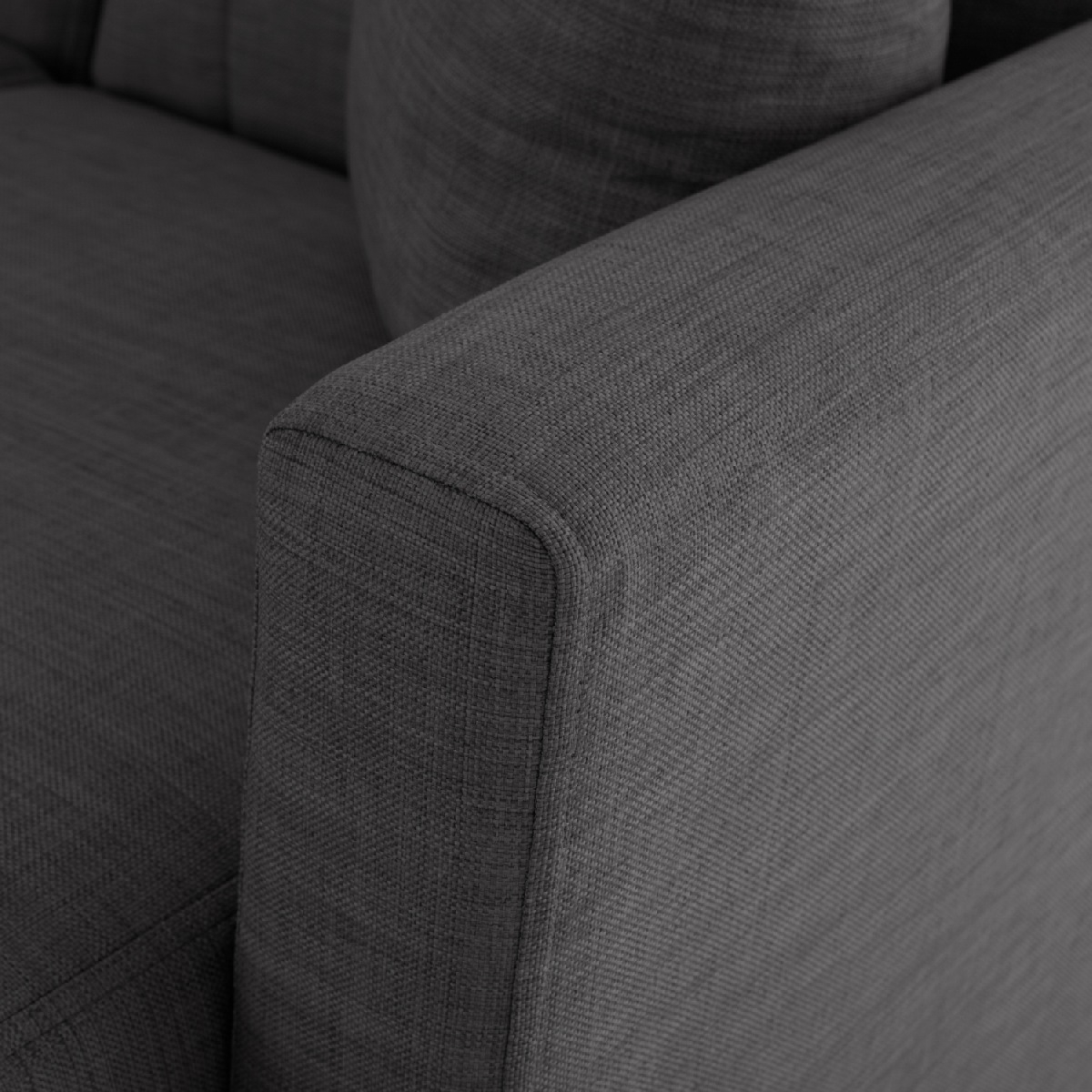 Η επένδυση του κρεβατιού έχει γίνει με ύφασμα εξαιρετικής ποιότητας, ενώ τα γεμίσματα τόσο στο κάθισμα, όσο και στην πλάτη είναι από μέτριας σκληρότητας αφρώδες υλικό που προσφέρει άνεση και ποιότητα στον ύπνο, όταν μετατρέπεται σε κρεβάτι.<br />