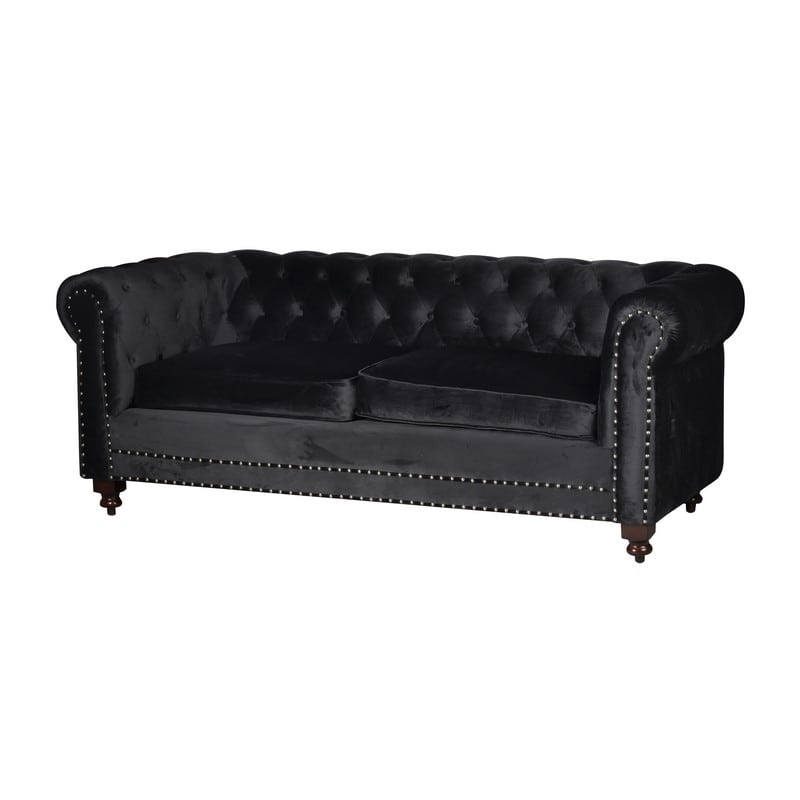 Καναπές τριθέσιος βελούδινος evan με καπιτονέ πλάτη και καμπαράδες 198.1x90.2x78.2 εκ