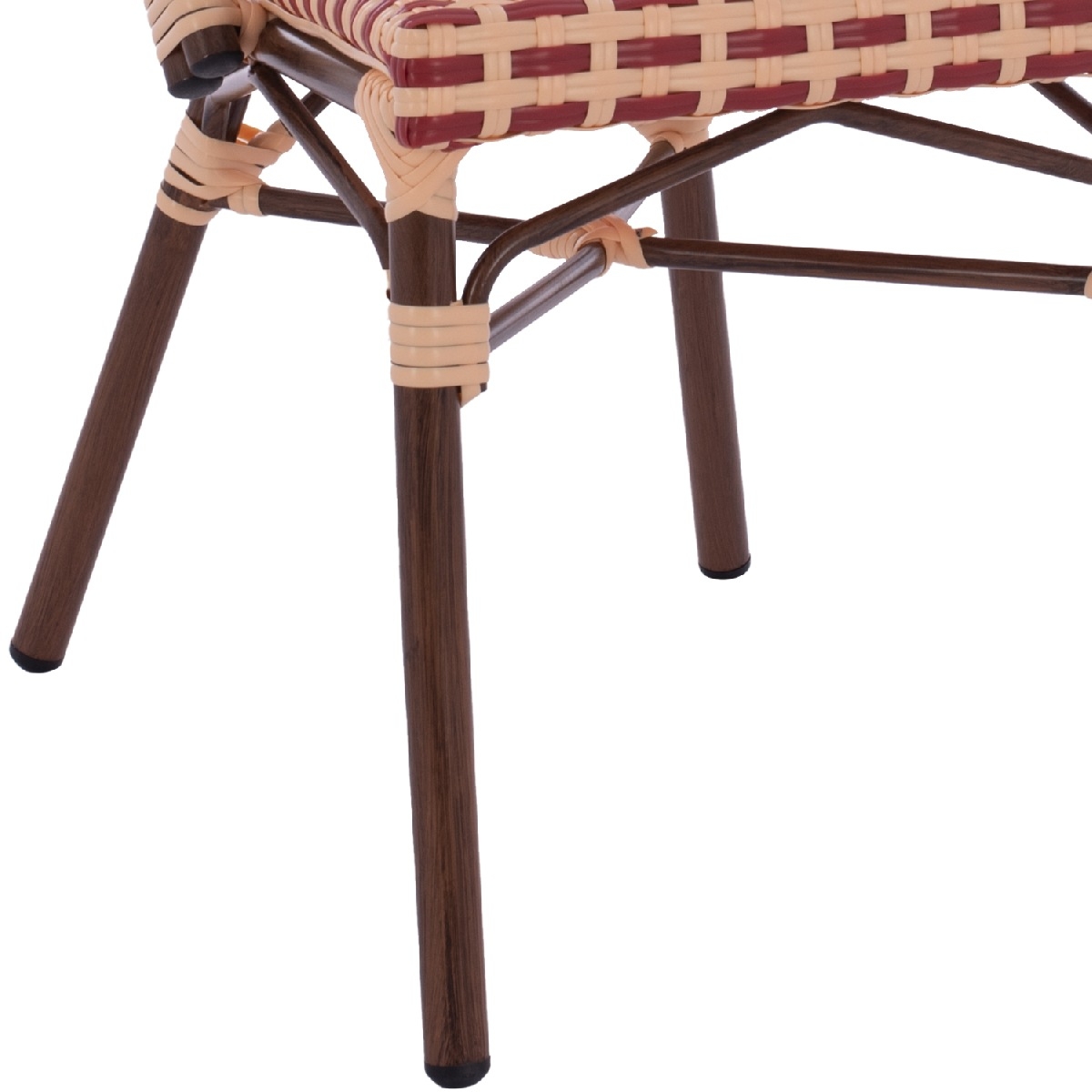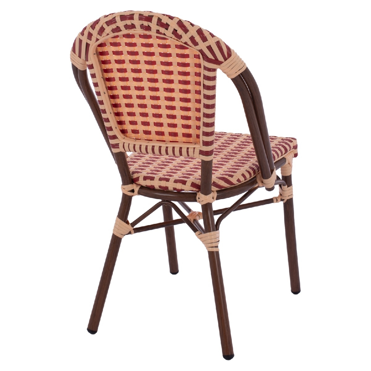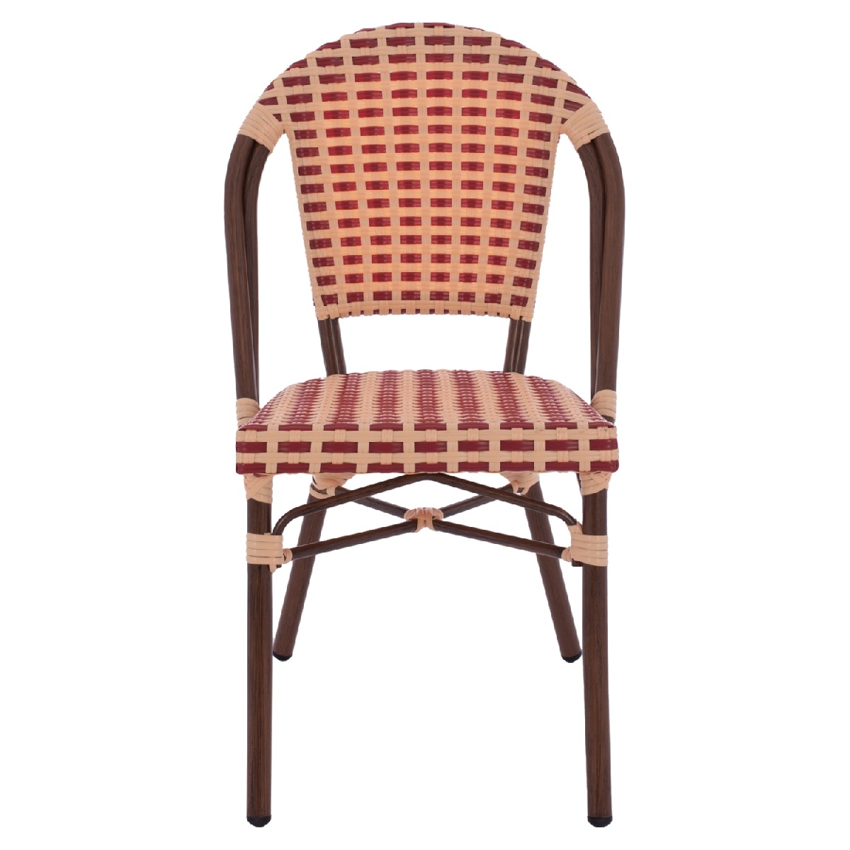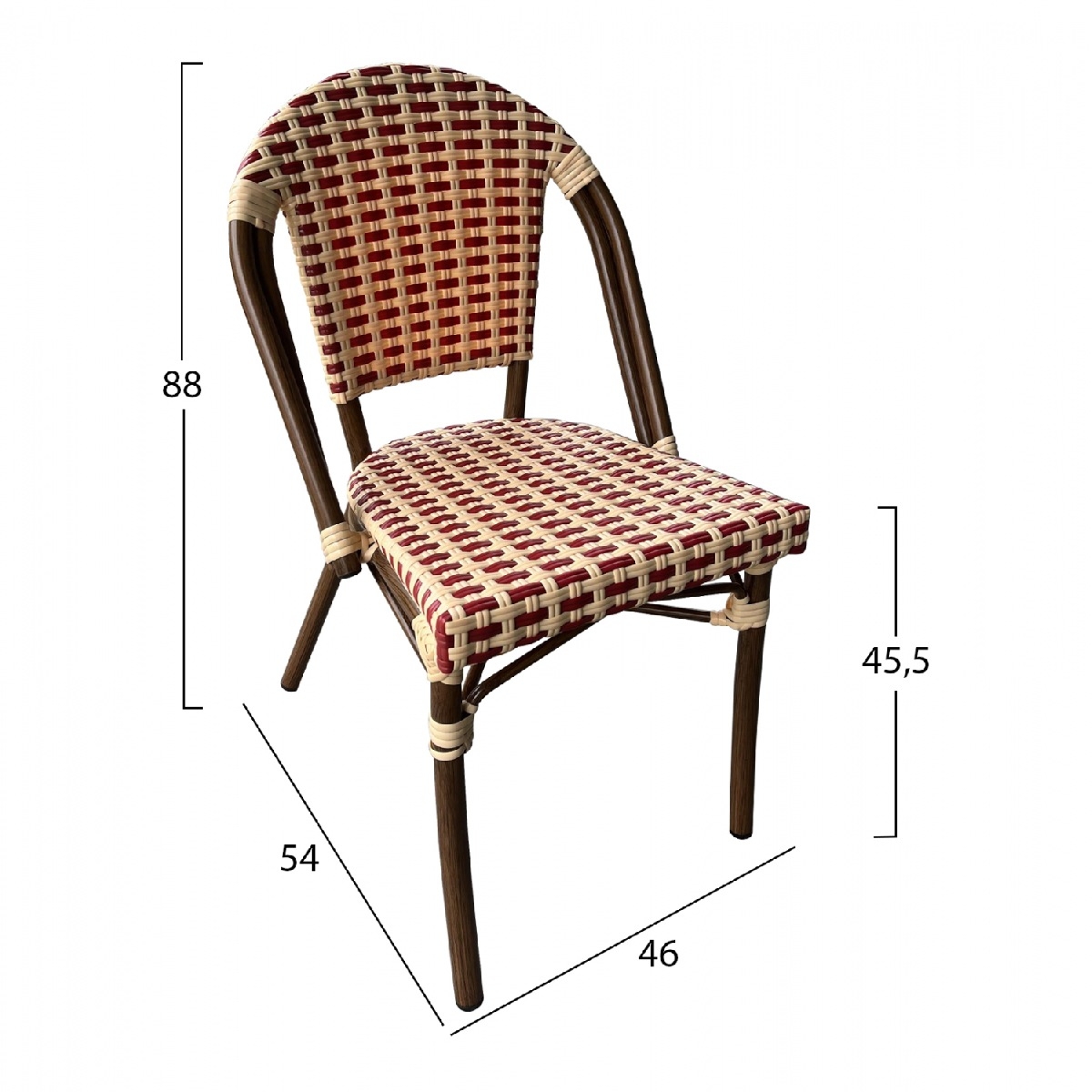 Η καρέκλα εξωτερικού χώρου ΗΜ5817.01 είναι μια λιτή και όμορφη καρέκλα, τύπου bistro, που θα ταιριάξει με πολλά άλλα έπιπλα για το μπαλκόνι ή τον κήπο σας. Το χρώμα ολόκληρου του σκελετού που παρομοιάζει το ξύλο bamboo είναι καφέ, ενώ η πλέξη wicker με το συνθετικό rattan είναι σε χρώμα μπεζ-κόκκινο. Η αίσθηση που αφήνει, είναι αυτή της άνεσης, τόσο στο κάθισμα, όσο και στην φαρδιά πλάτη. Δεν διαθέτει μπράτσα, πράγμα που αφήνει ακόμα μεγαλύτερη ελευθερία κινήσεων, για όσους προτιμούν αυτό το στυλ καρέκλας. <br />